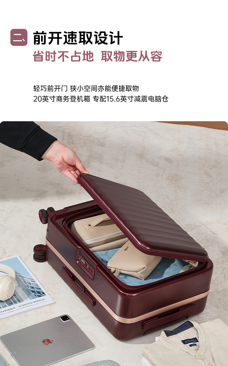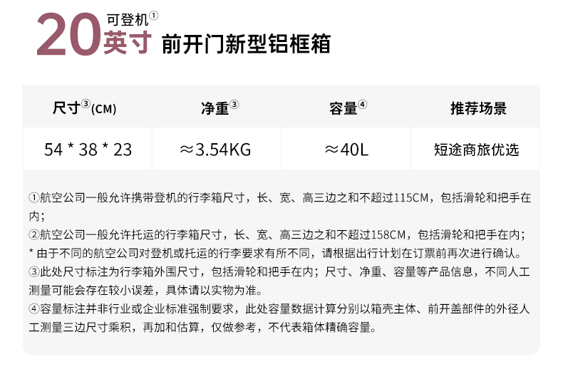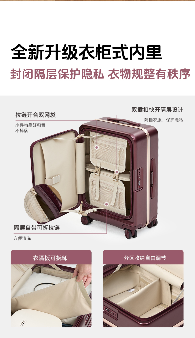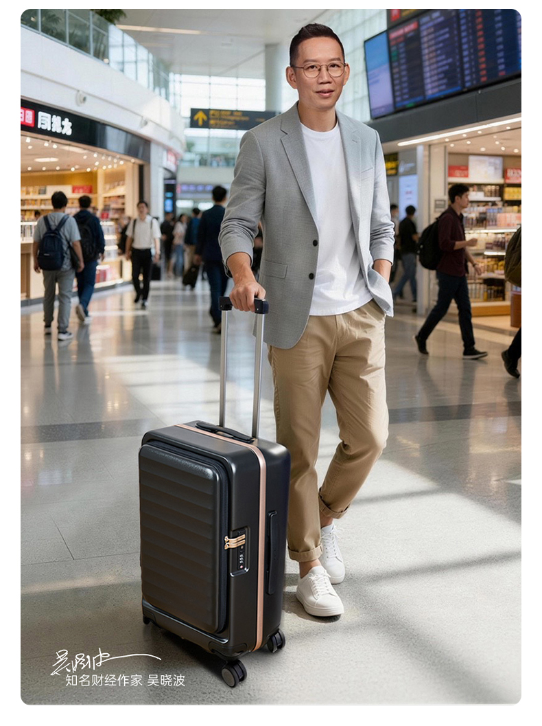 【吴晓波联名铝框箱】锦囊创新榫卯铝框登机箱承重抗压前开行李箱 CN8426