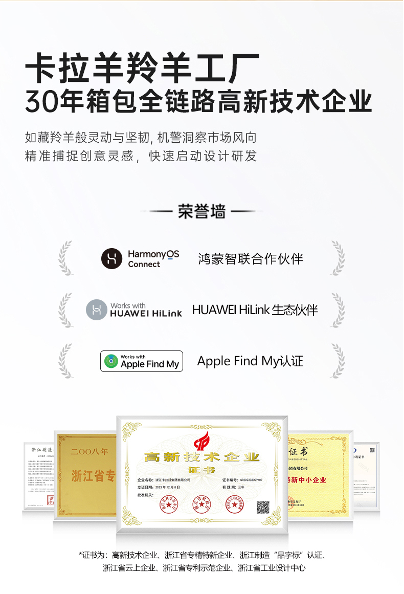 - 浙江卡拉扬集团有限公司专注箱包27年,旗下有卡拉羊和9UM两大品牌,有浙江海宁和江苏沭阳两大工厂,拥有多项知识产权,是集智能化、设计生产、品牌营销为一体的综合型企业。