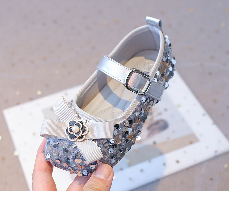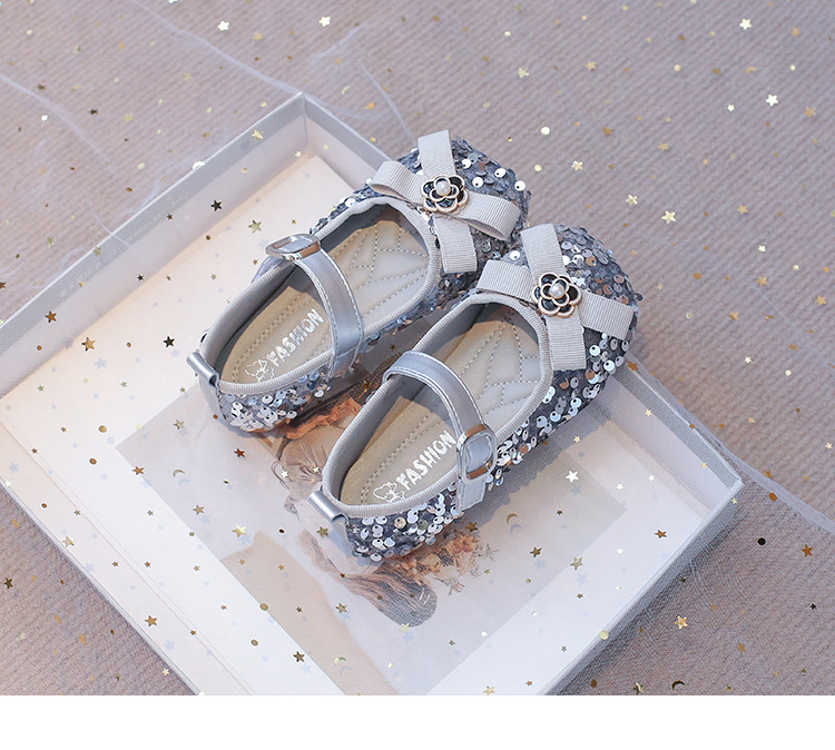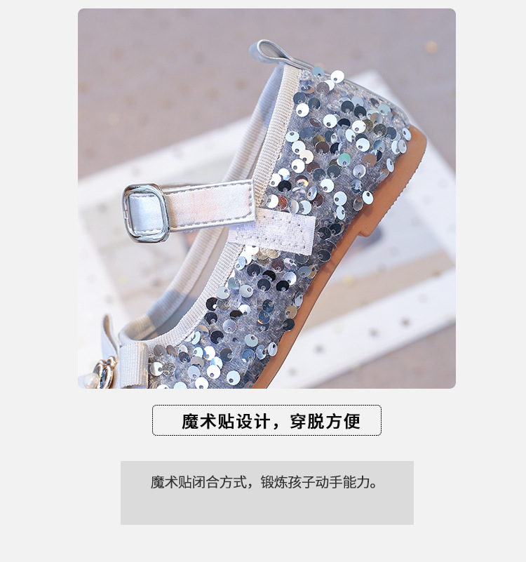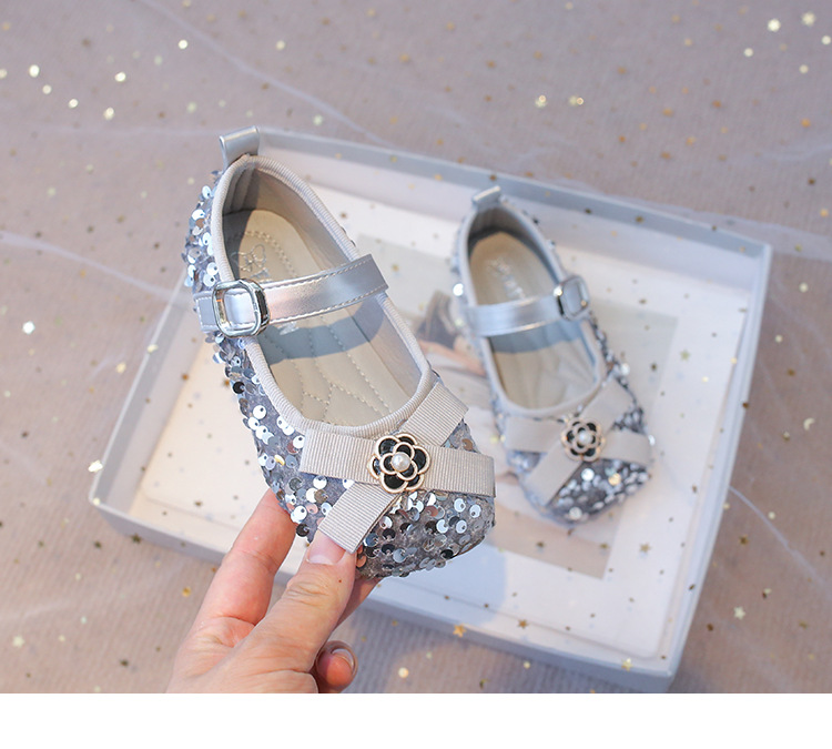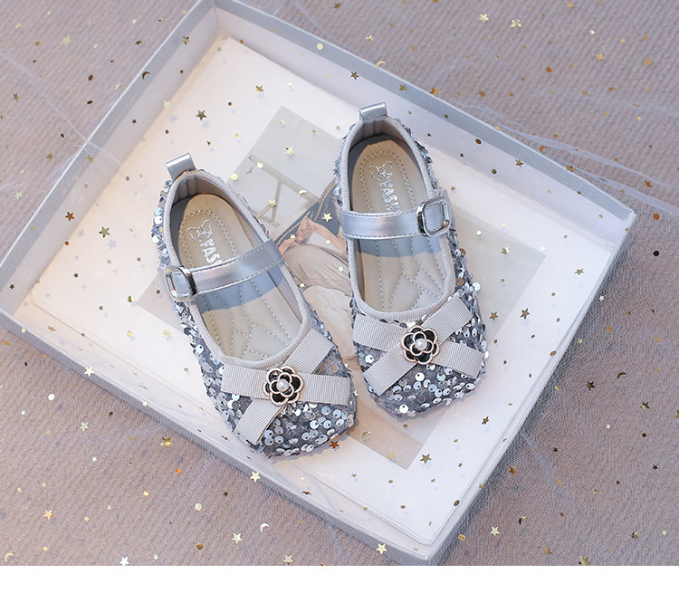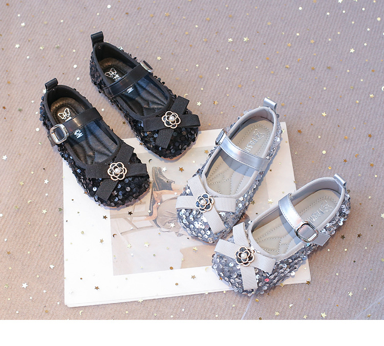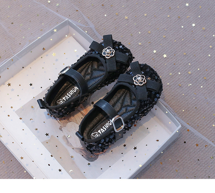 【干爽内里,舒适透气不捂脚】童鞋2024秋季新款 韩版小香风 亮片花朵女童 时尚皮鞋 公主鞋-QQ