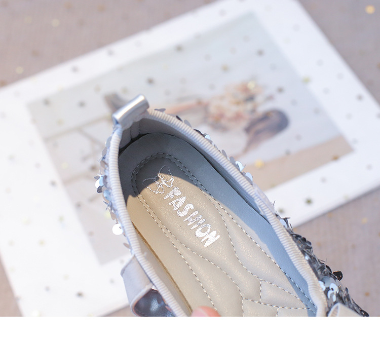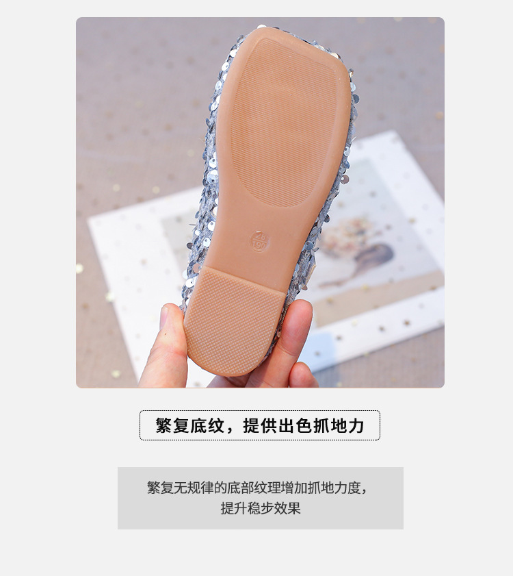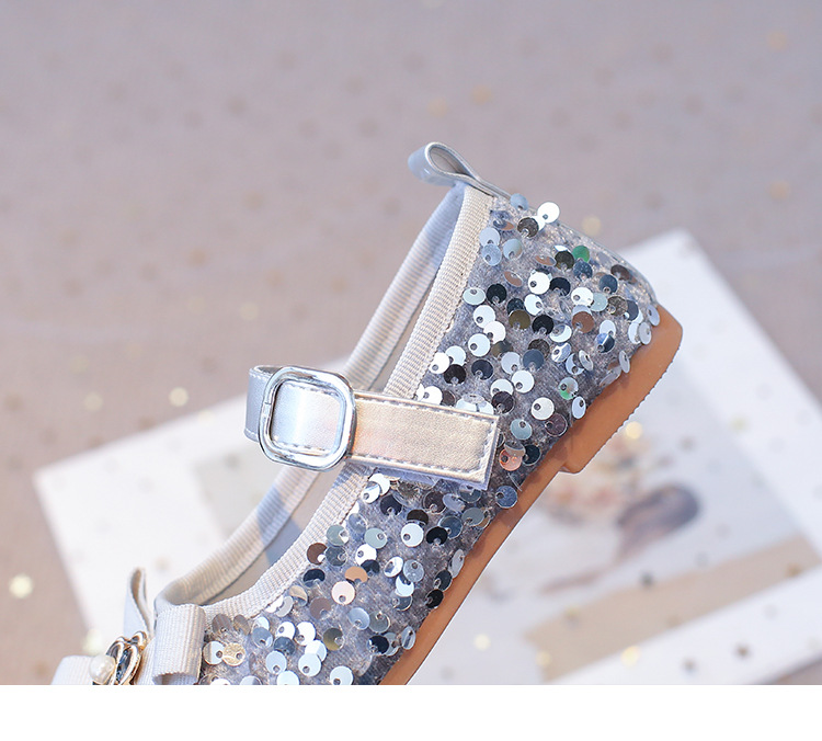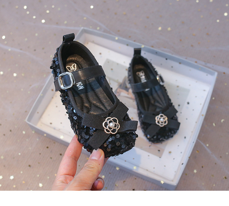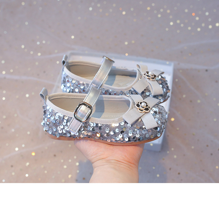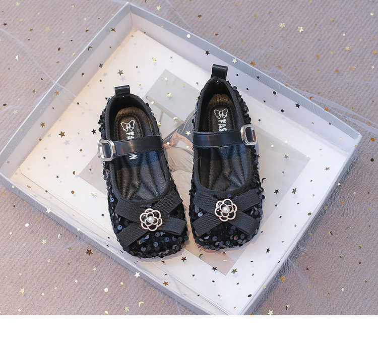 【干爽内里,舒适透气不捂脚】童鞋2024秋季新款 韩版小香风 亮片花朵女童 时尚皮鞋 公主鞋-QQ