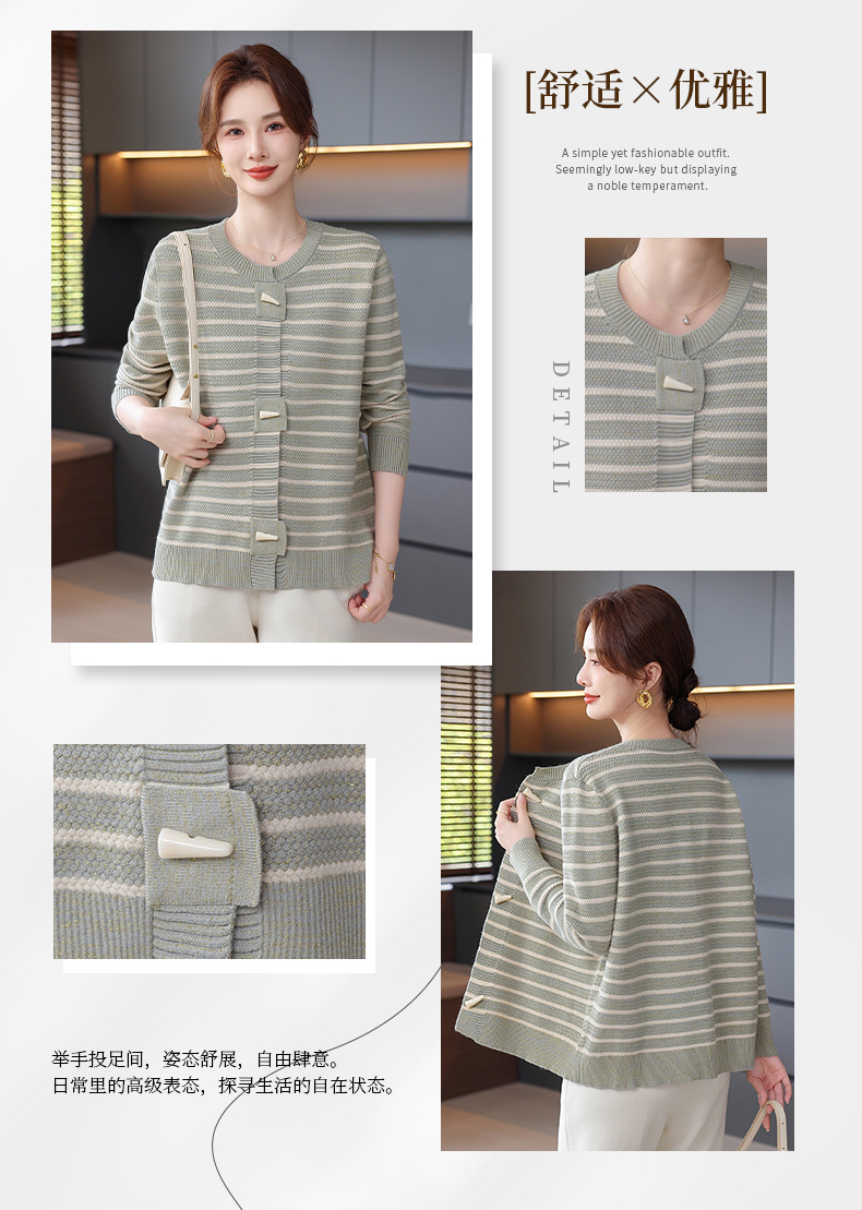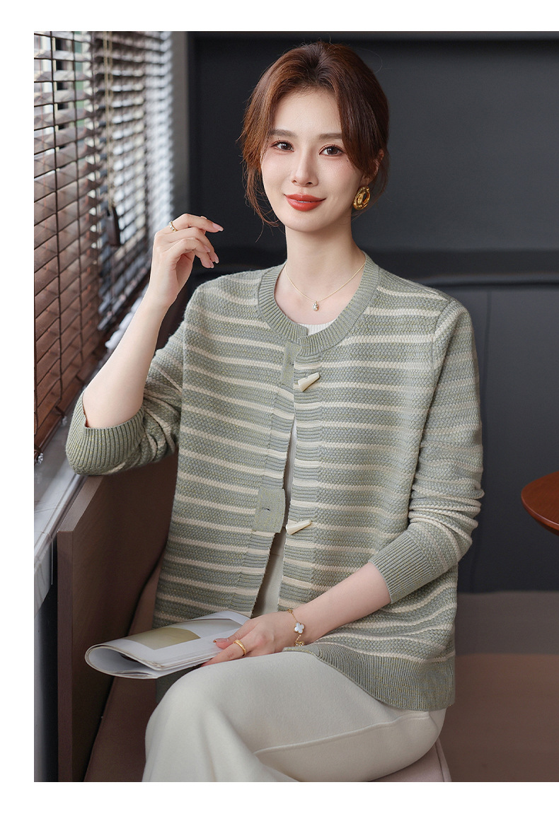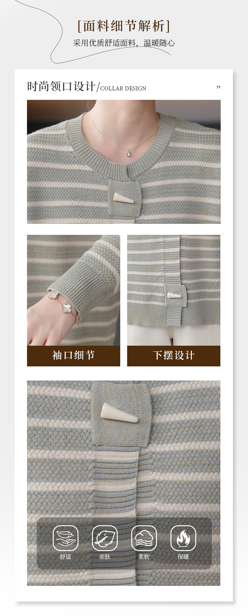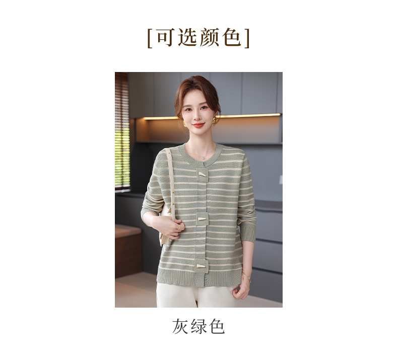Q1027优雅妈妈装撞色条纹针织开衫秋冬新款洋气百搭中老年女装外套