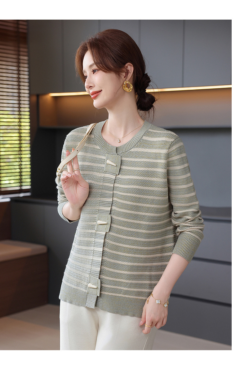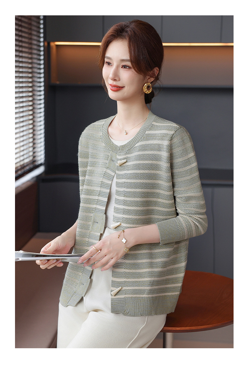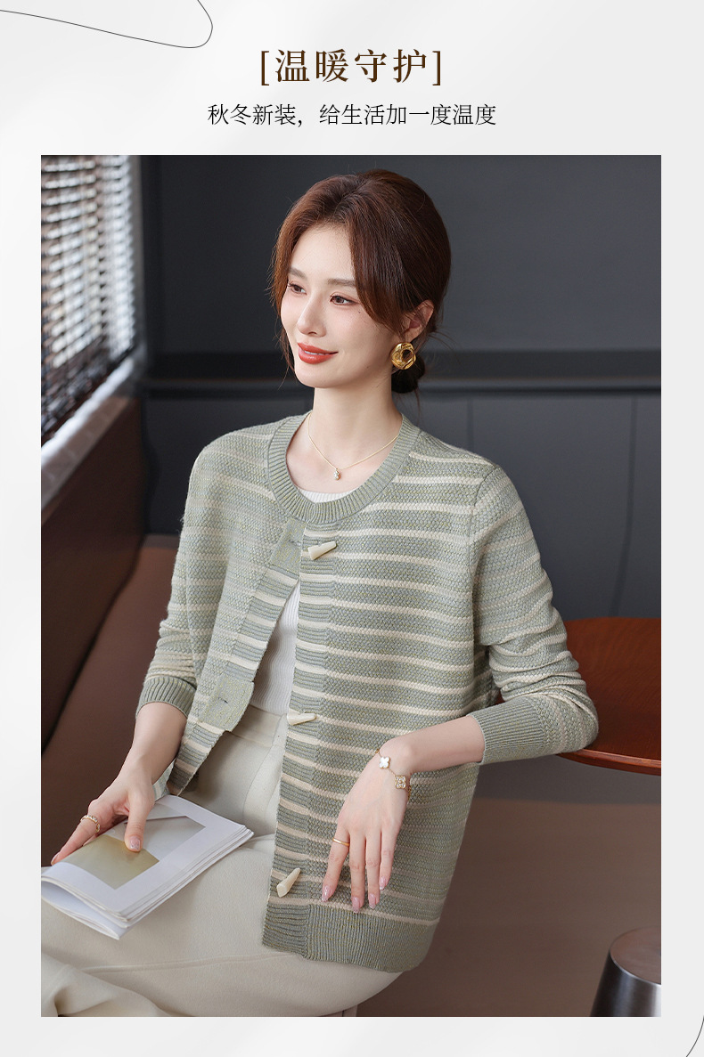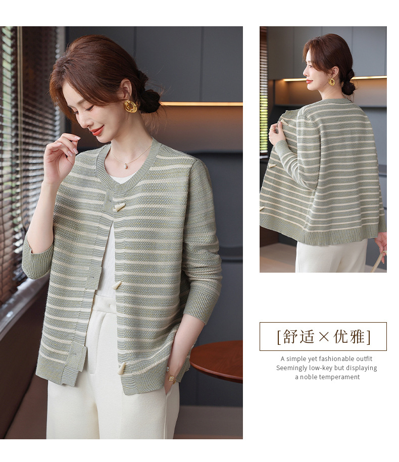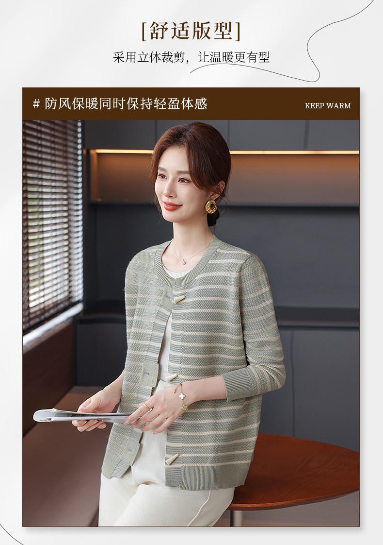 Q1027优雅妈妈装撞色条纹针织开衫秋冬新款洋气百搭中老年女装外套