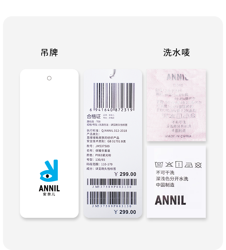 【厚实夹丝绵保暖衣】男女童保暖衣套装秋季新款安奈儿童装JM537589