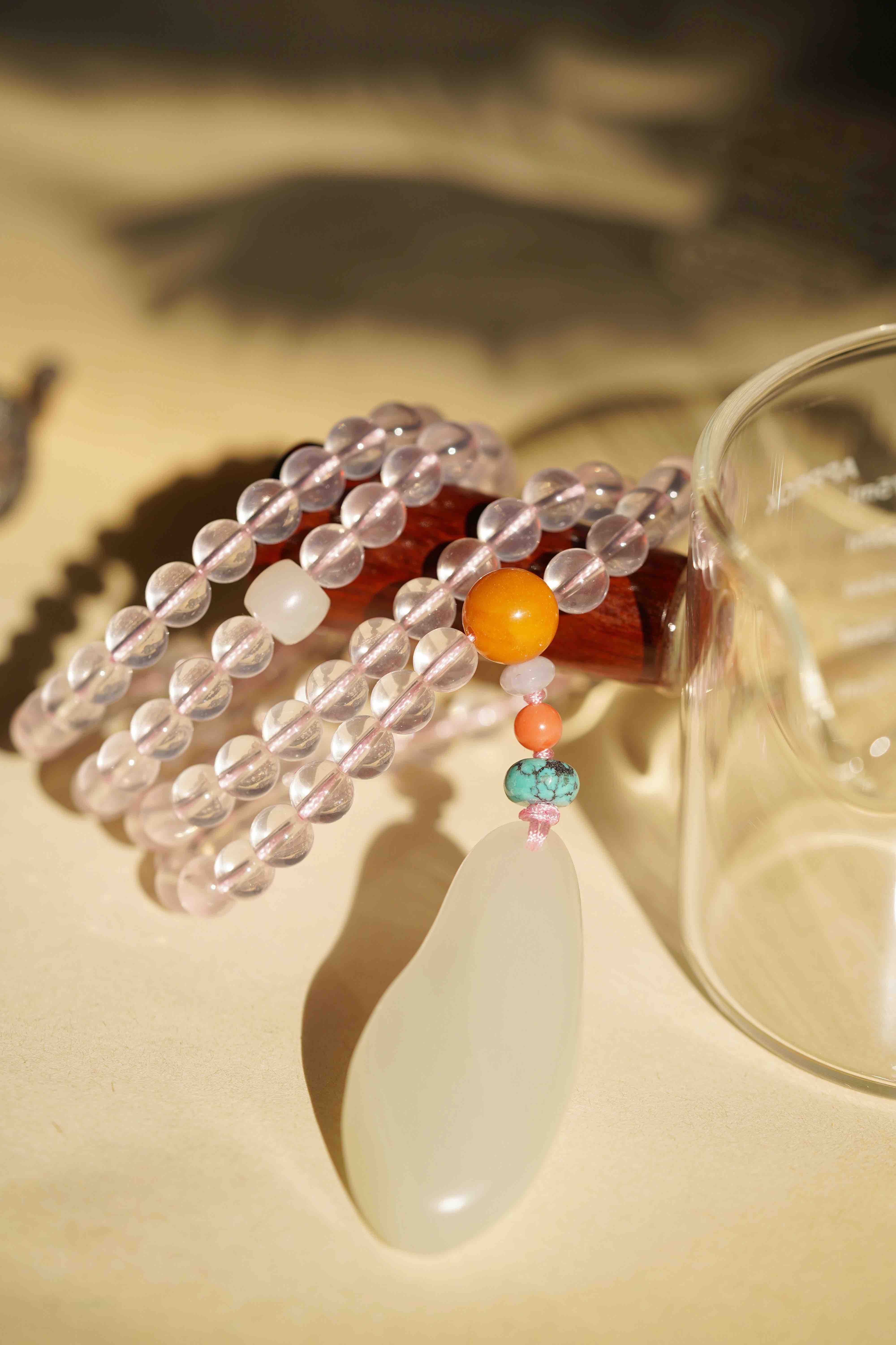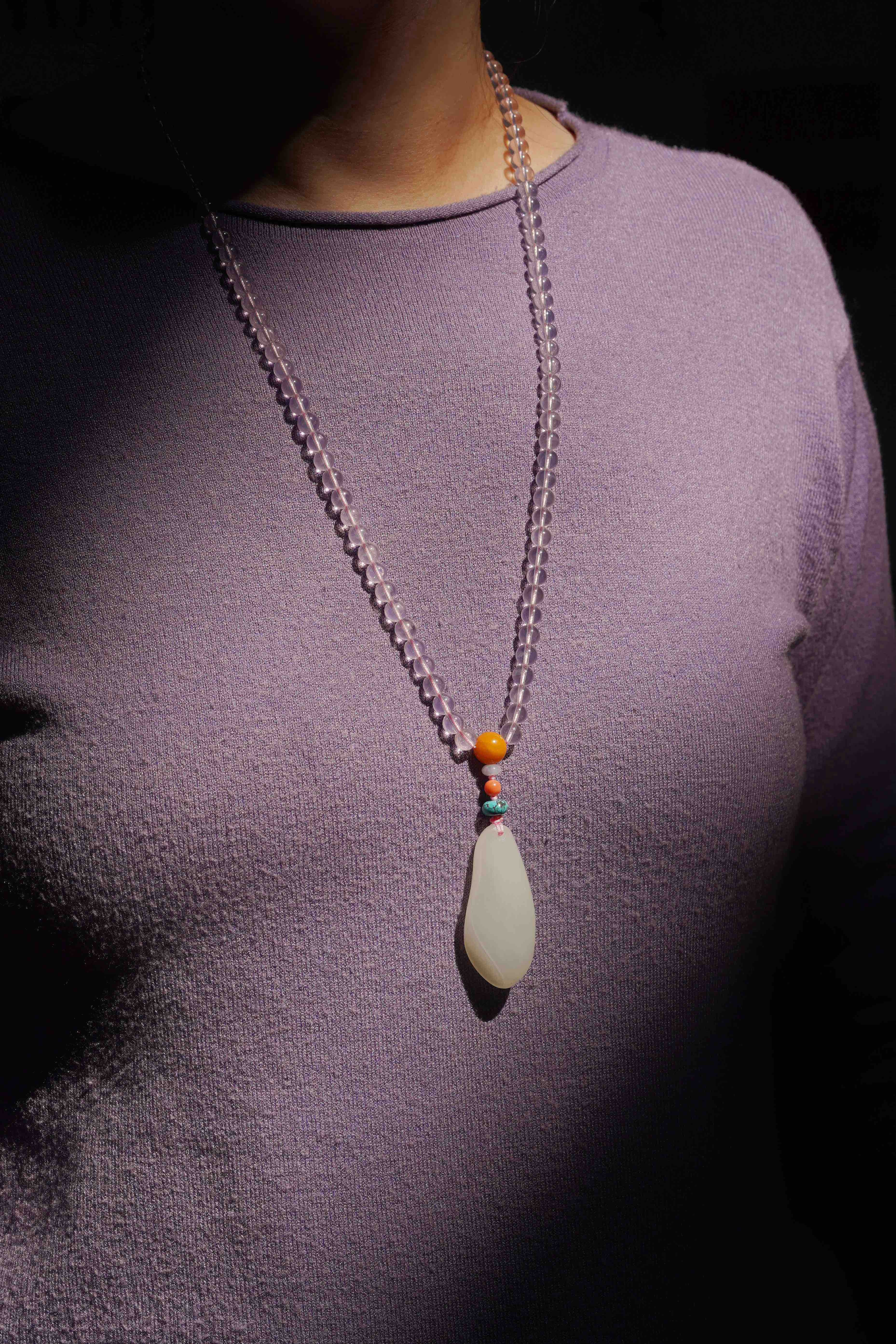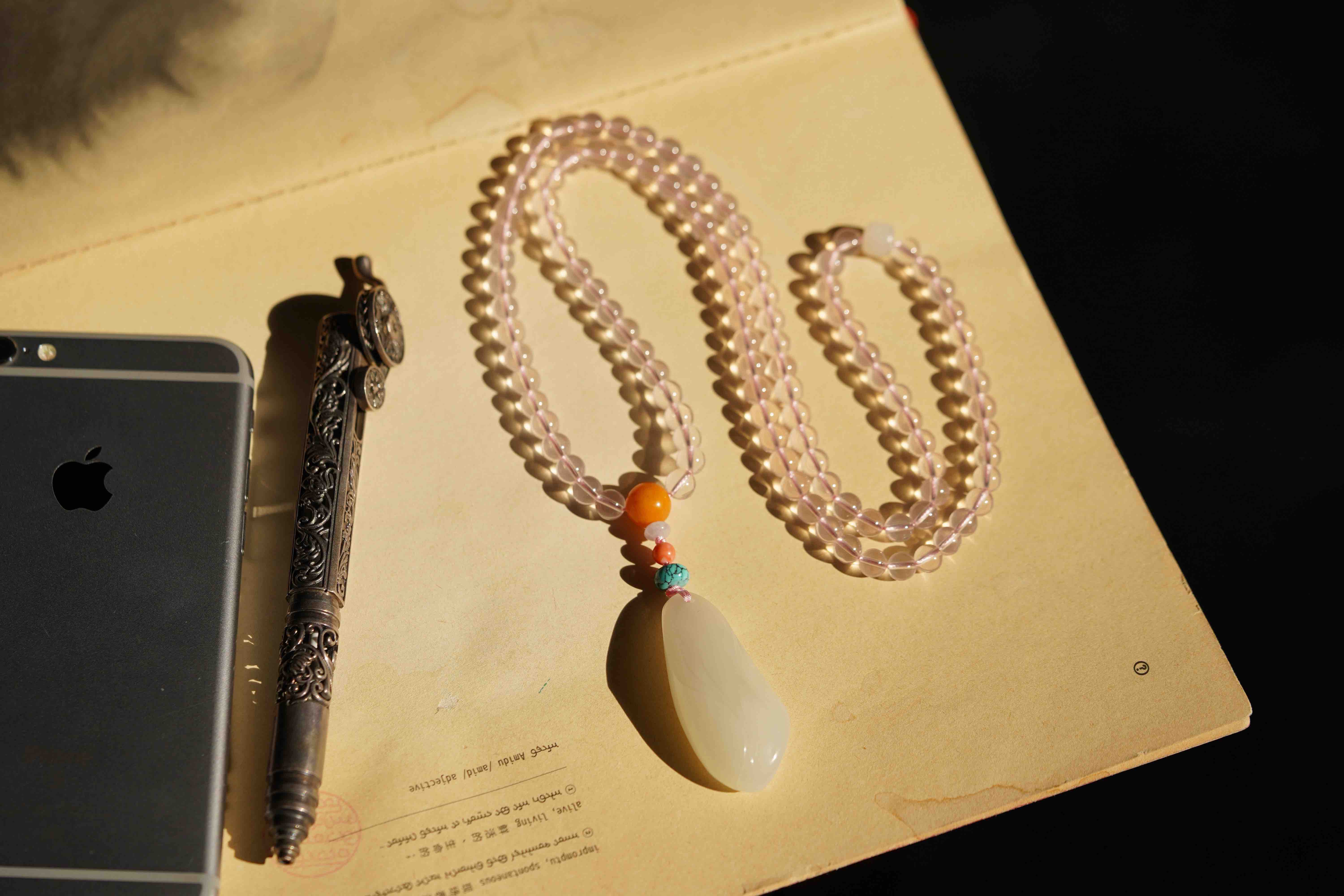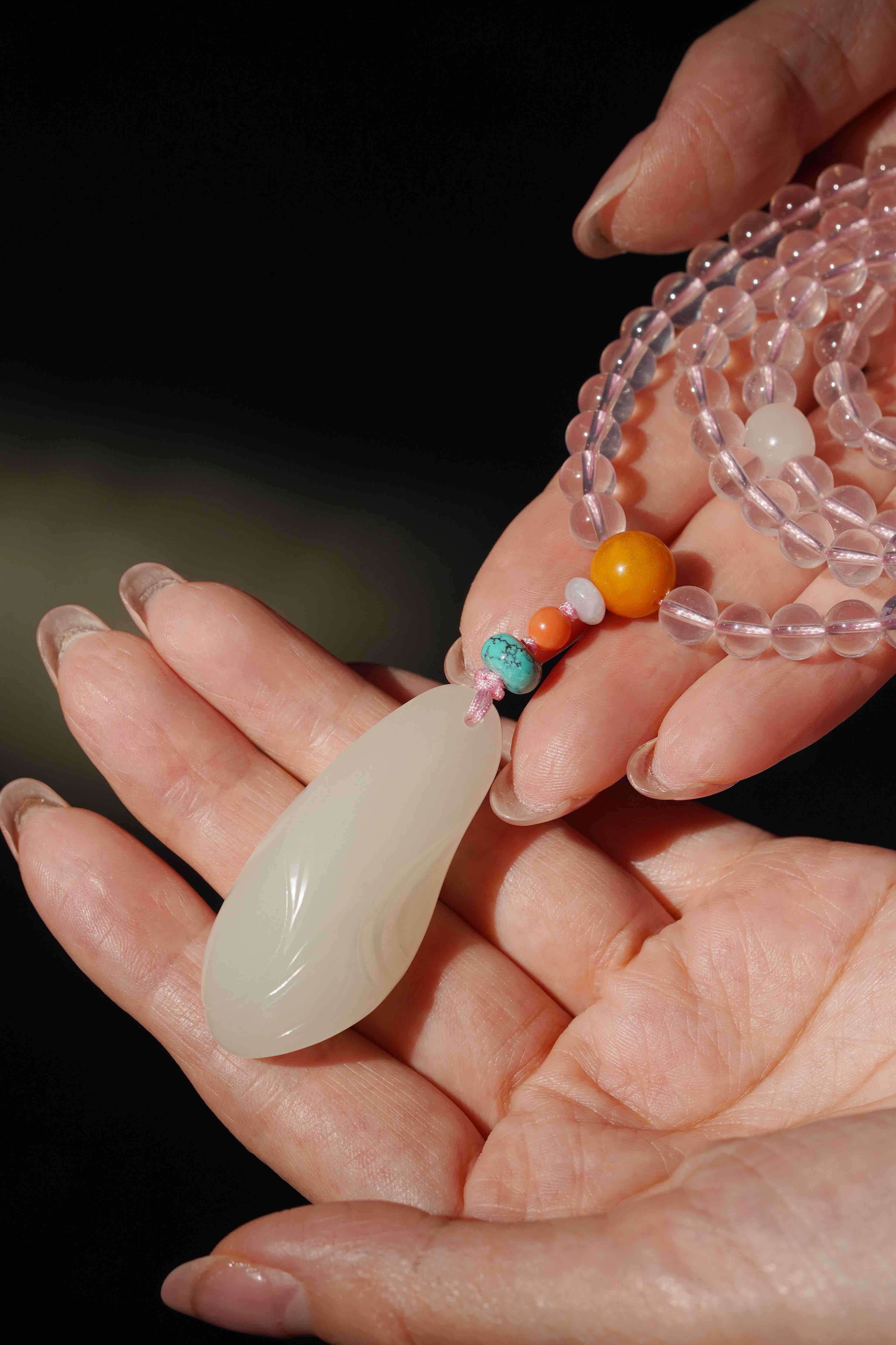 和田玉粉水晶吊坠