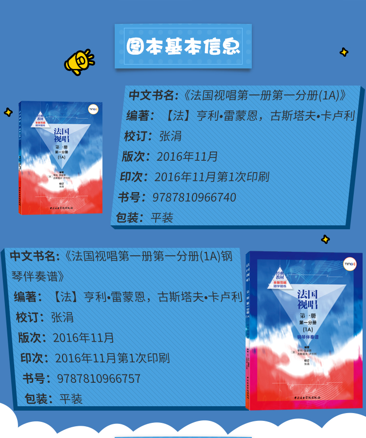 套装(含TING点读笔)法国视唱1A伴奏音乐视唱练耳央音考级专业教材