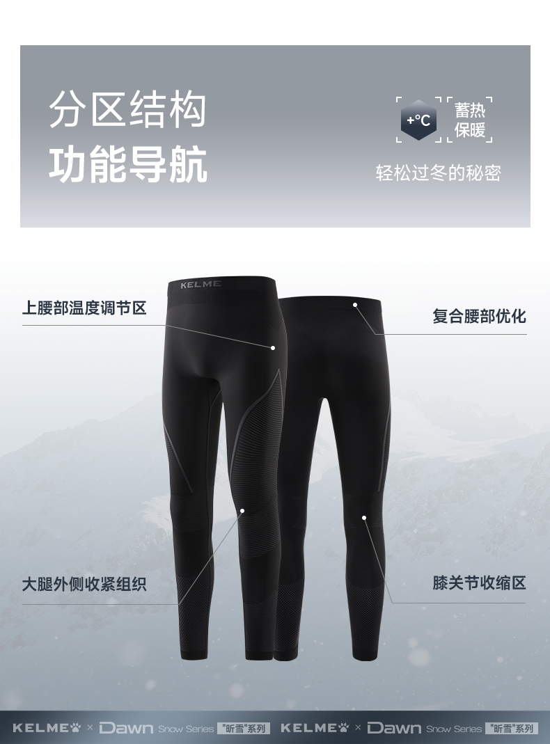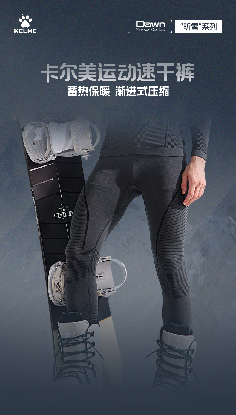 卡尔美一体织“昕雪”系列男士运动速干裤紧身长裤9543TL1083
