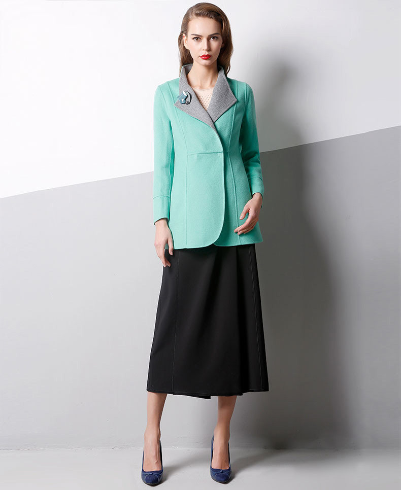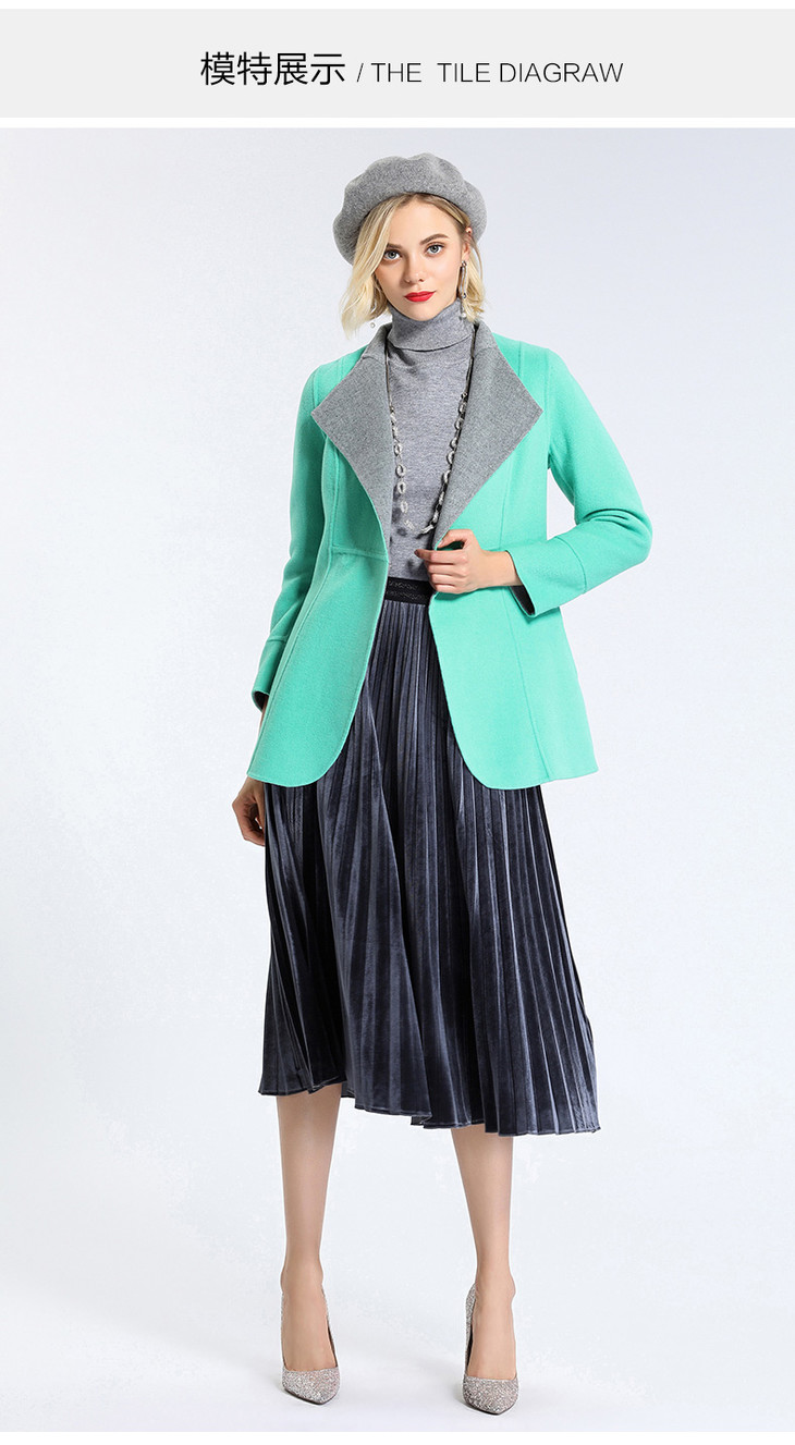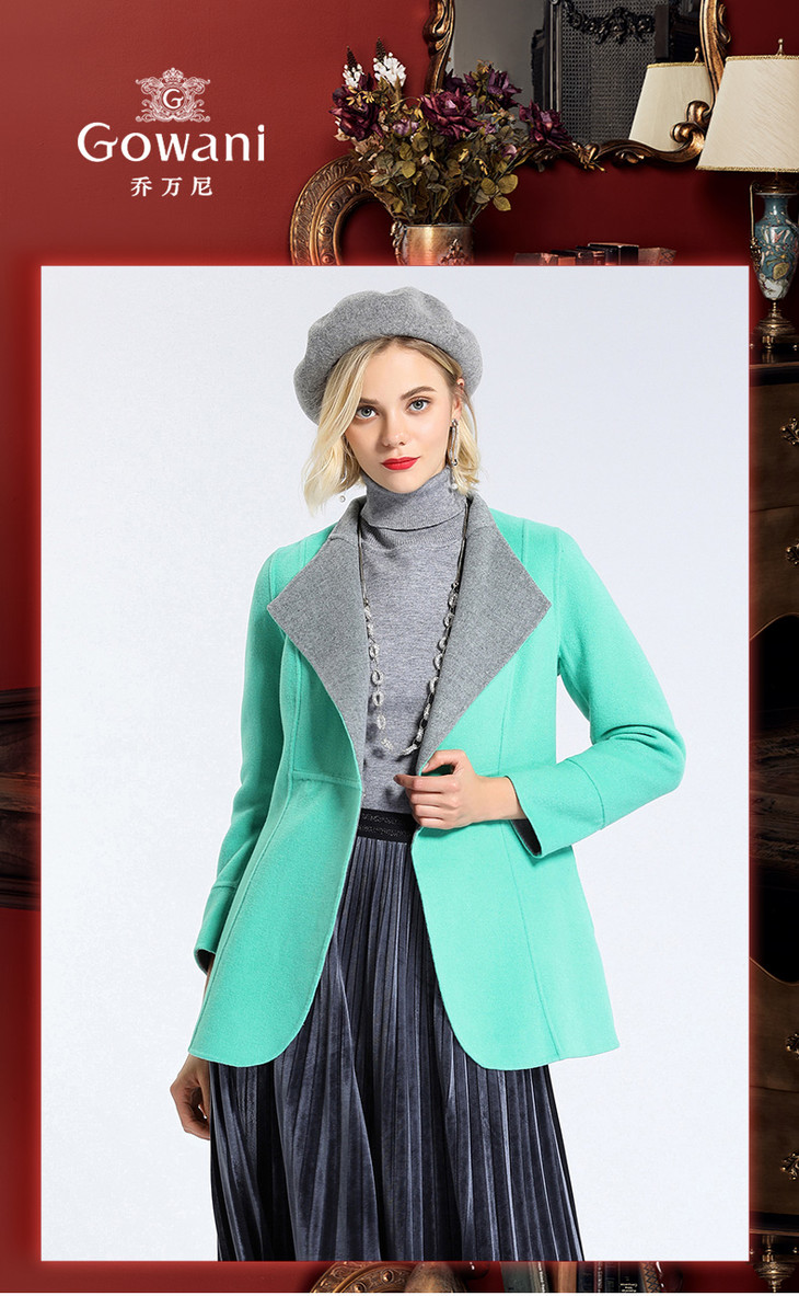 乔万尼秋冬显瘦羊毛呢大衣女简约时尚中长款修身外套E144A900