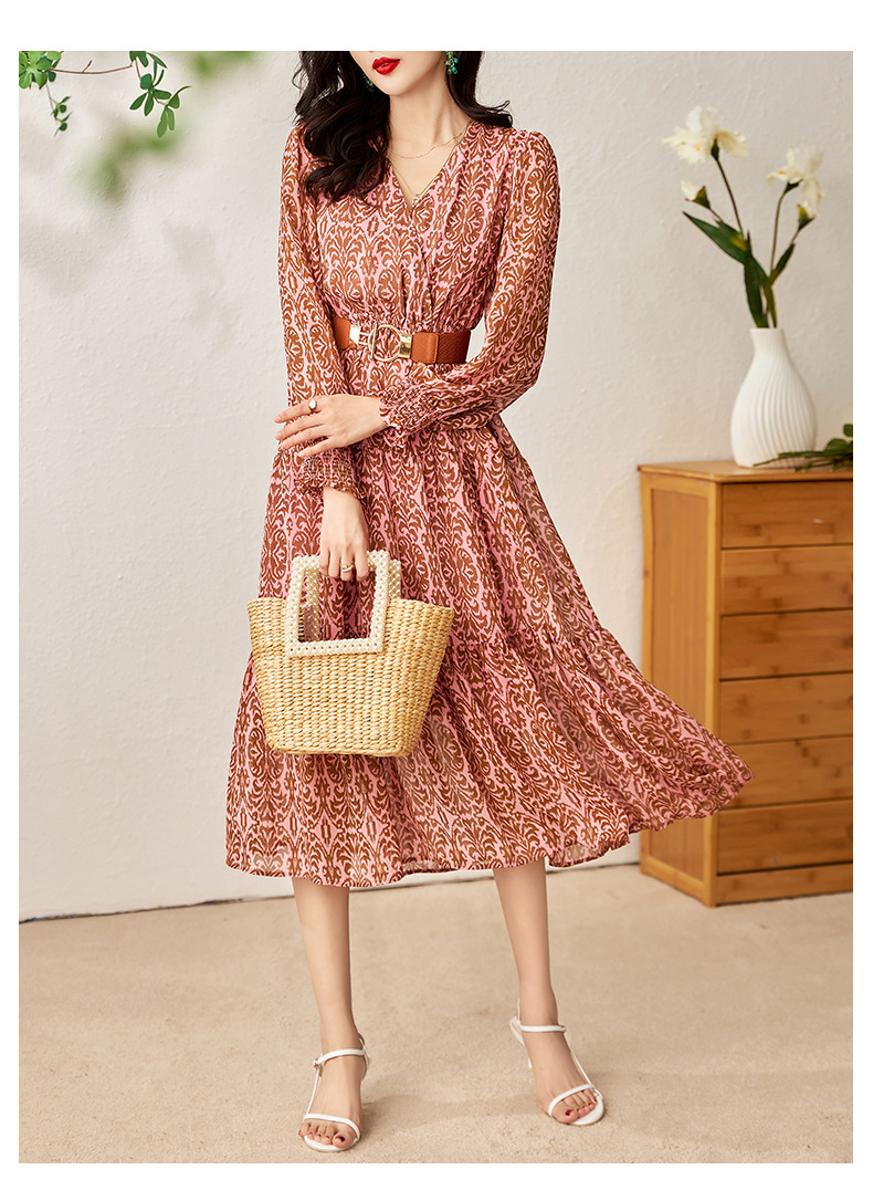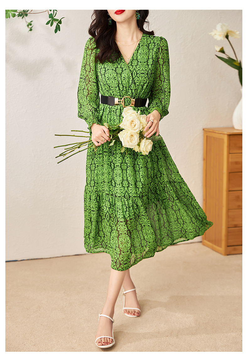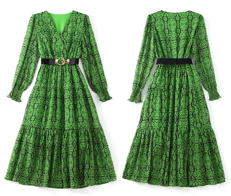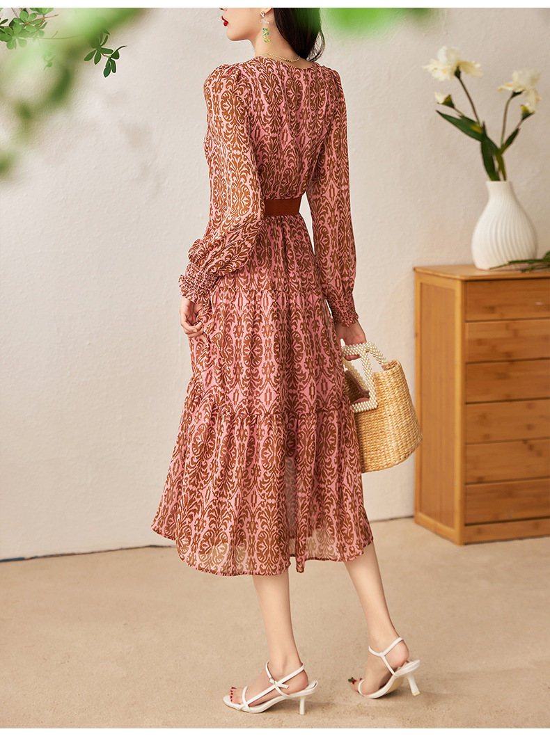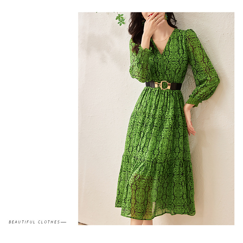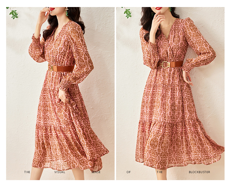 高货轻奢优雅印花连衣裙收腰显瘦遮肉沙滩裙WLZD2301405