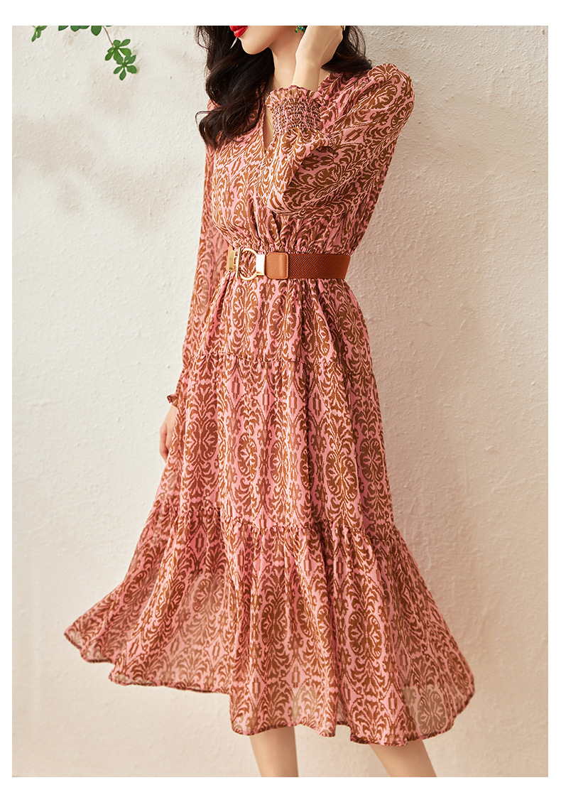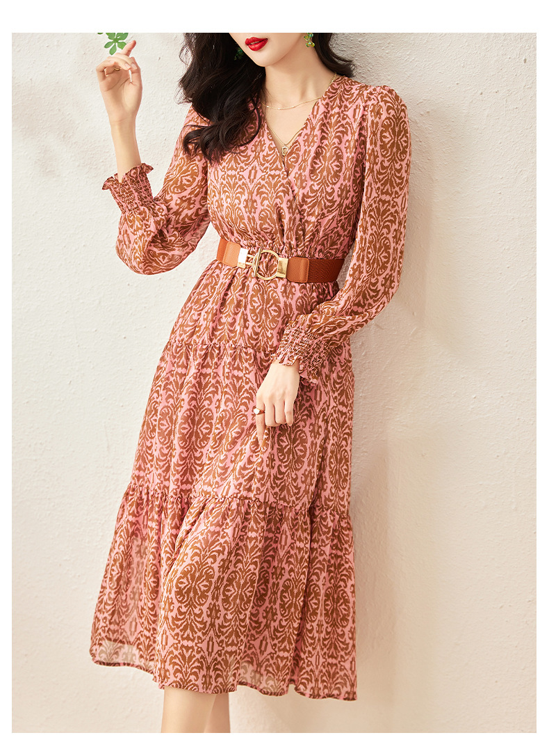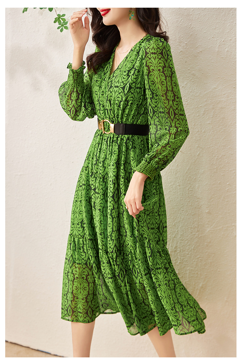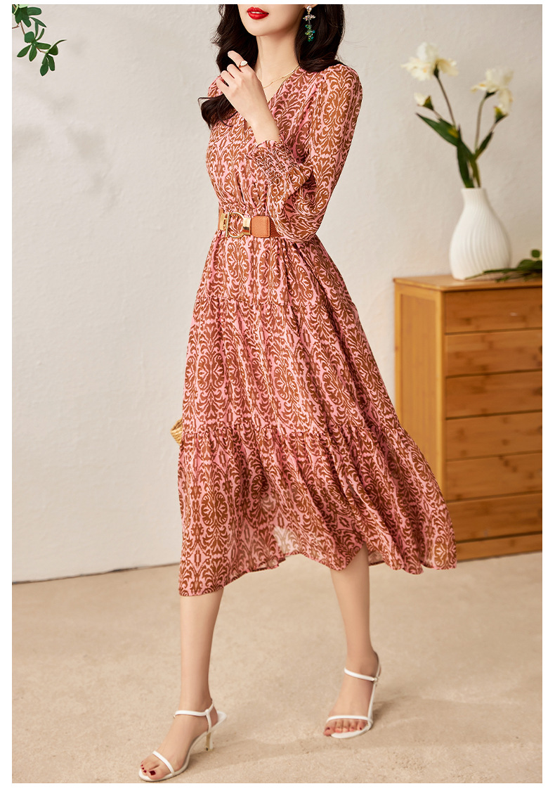 高货轻奢优雅印花连衣裙收腰显瘦遮肉沙滩裙WLZD2301405