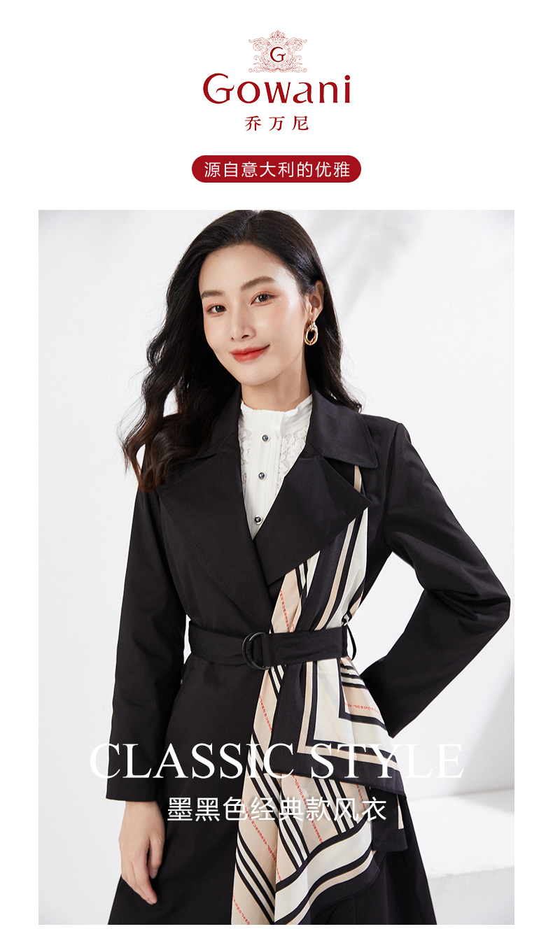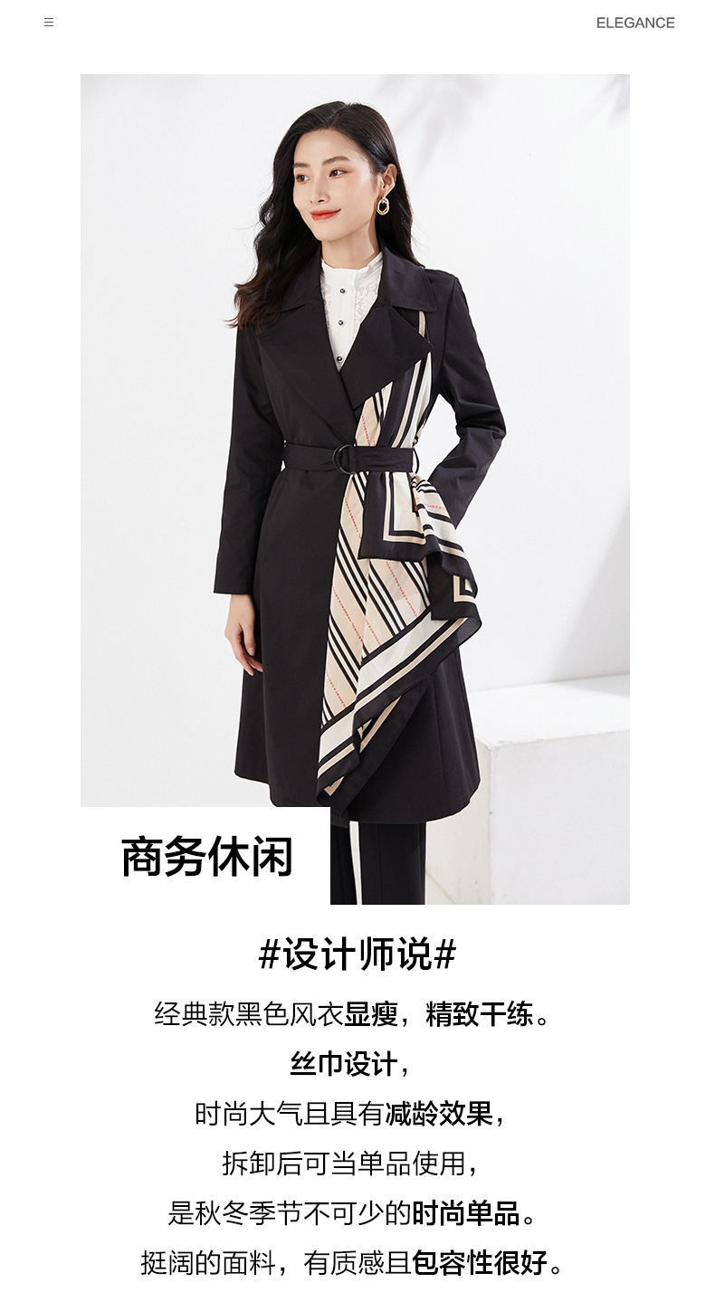 乔万尼风衣中长款带丝巾设计感精致贵气EI3A176