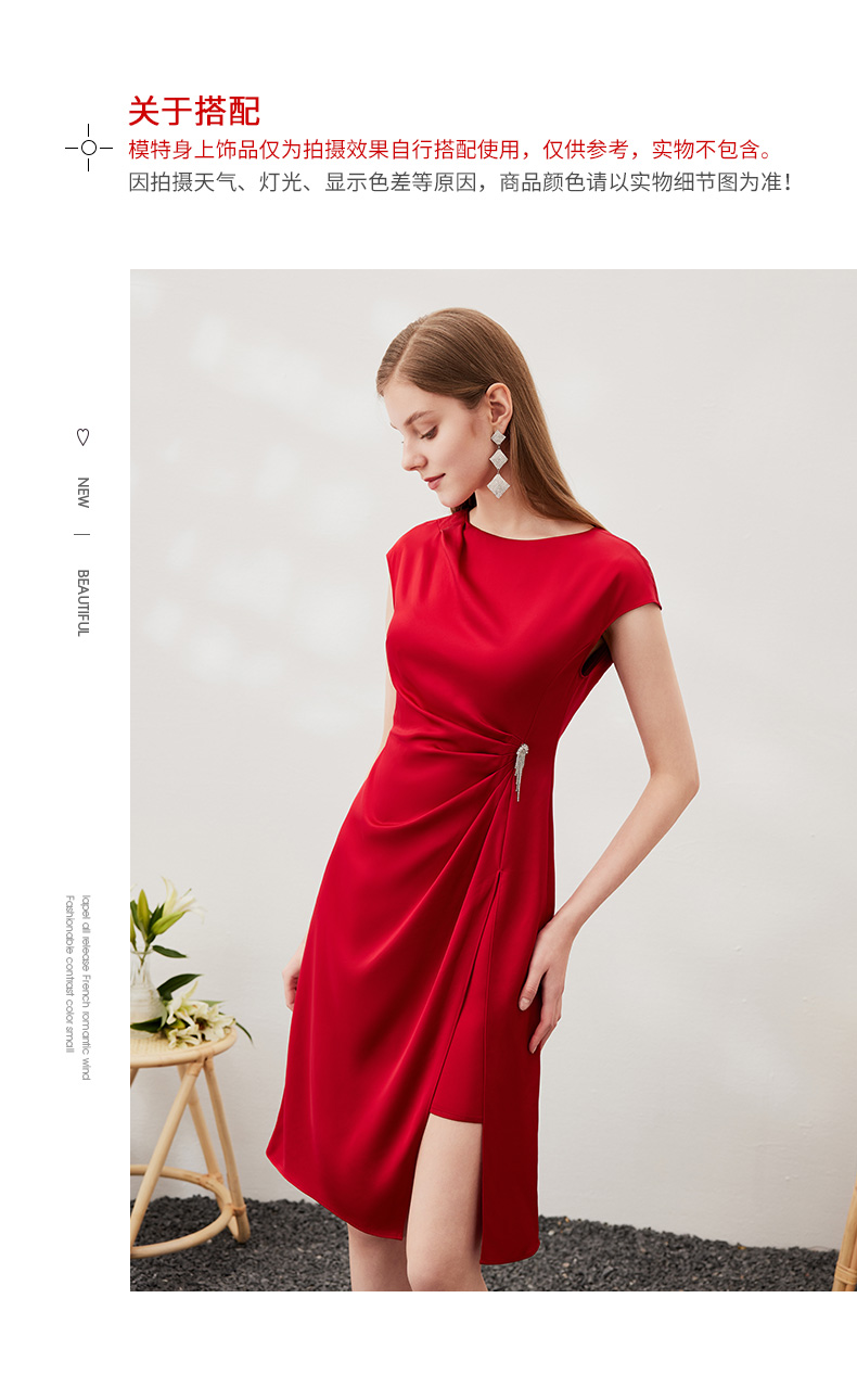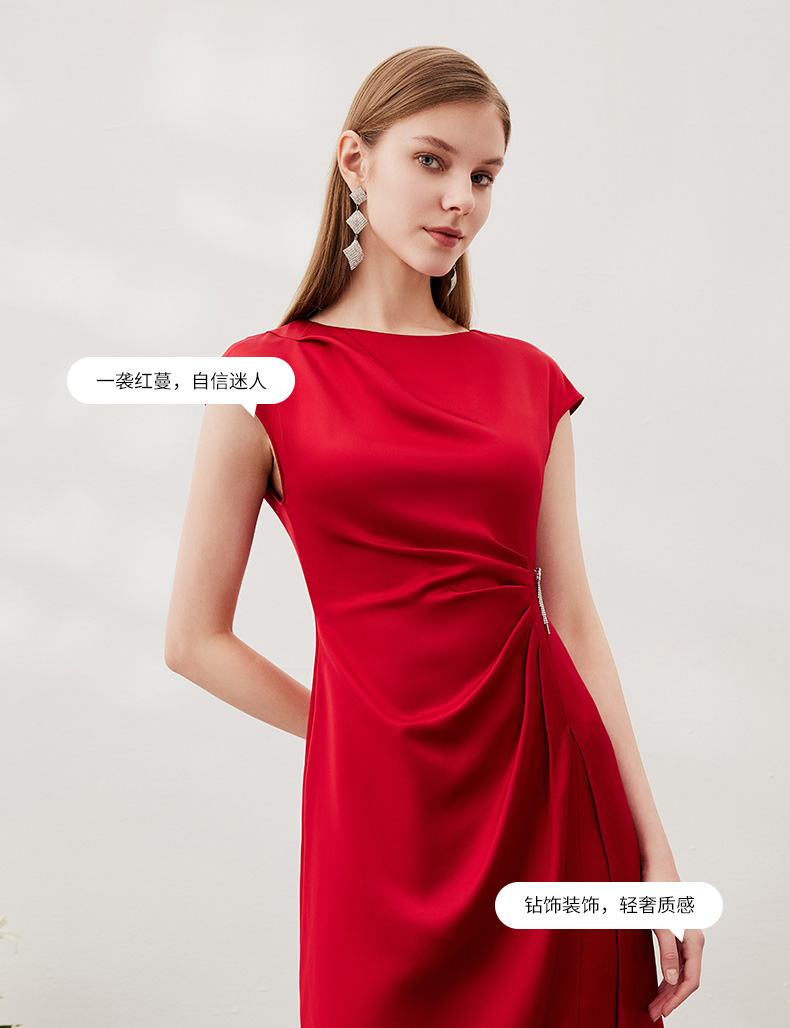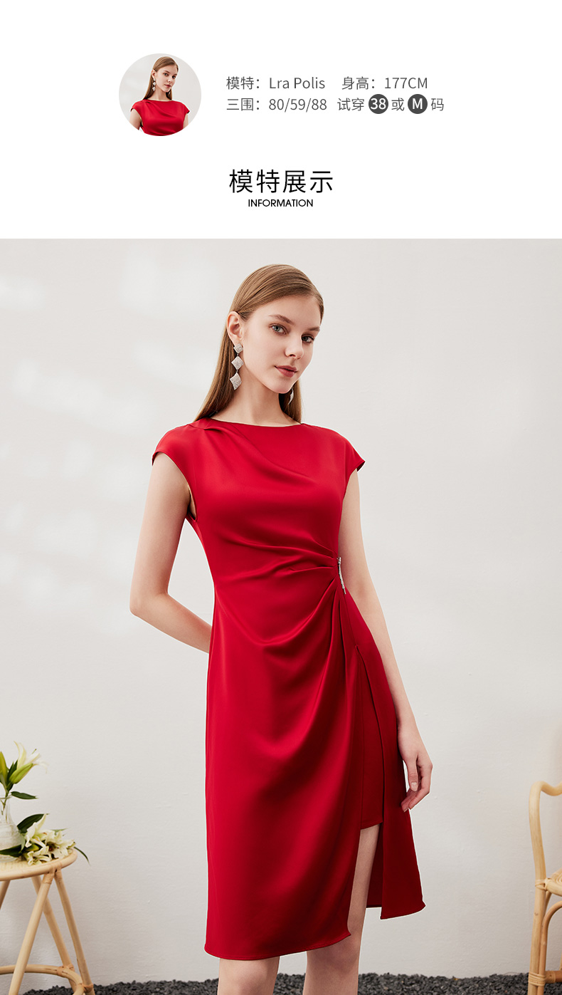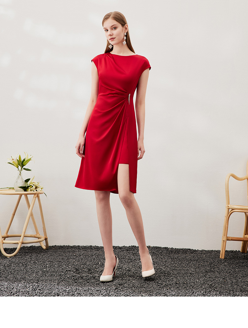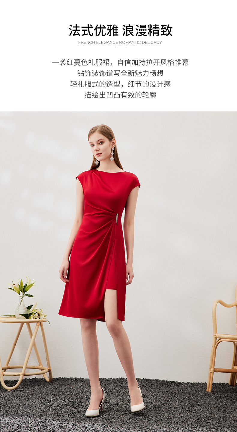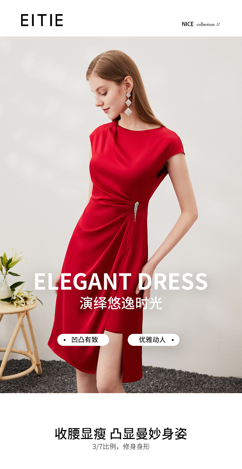 EITIE爱特爱春季新款不规则开衩修身红色飞袖礼服连衣裙6977612