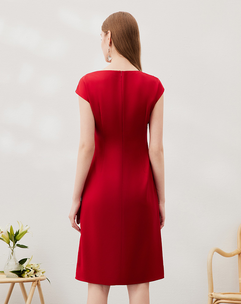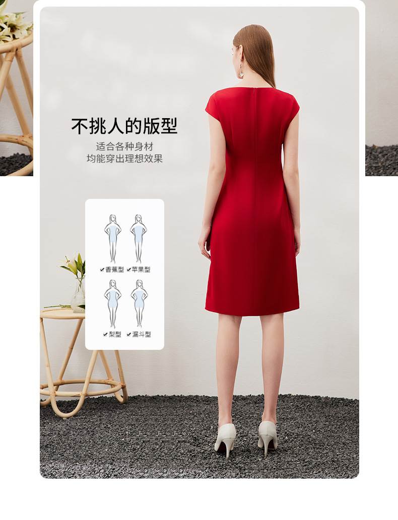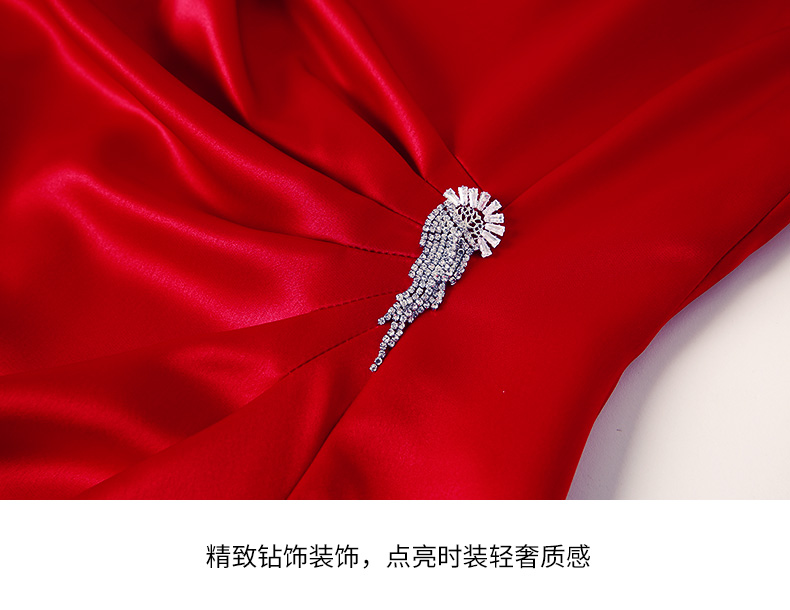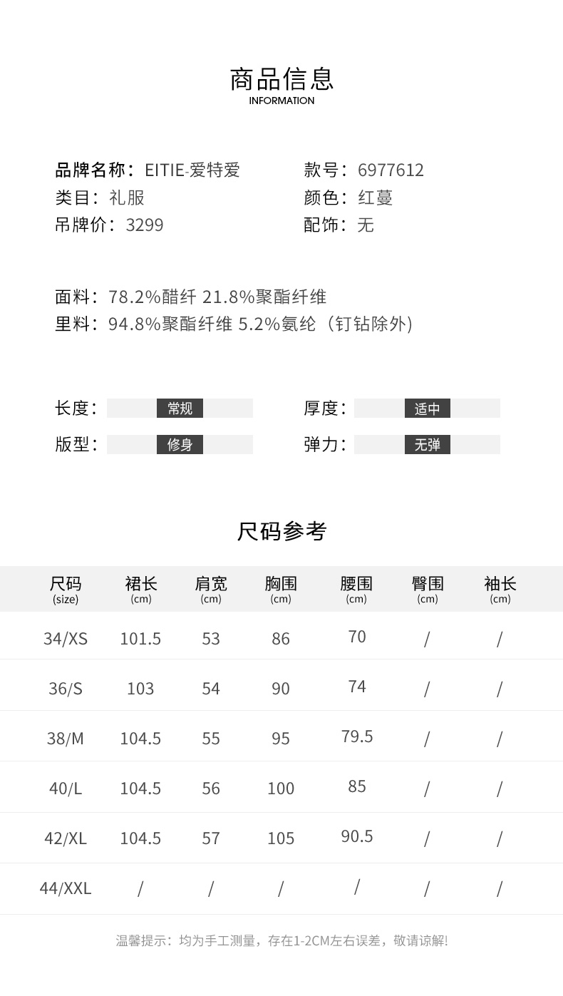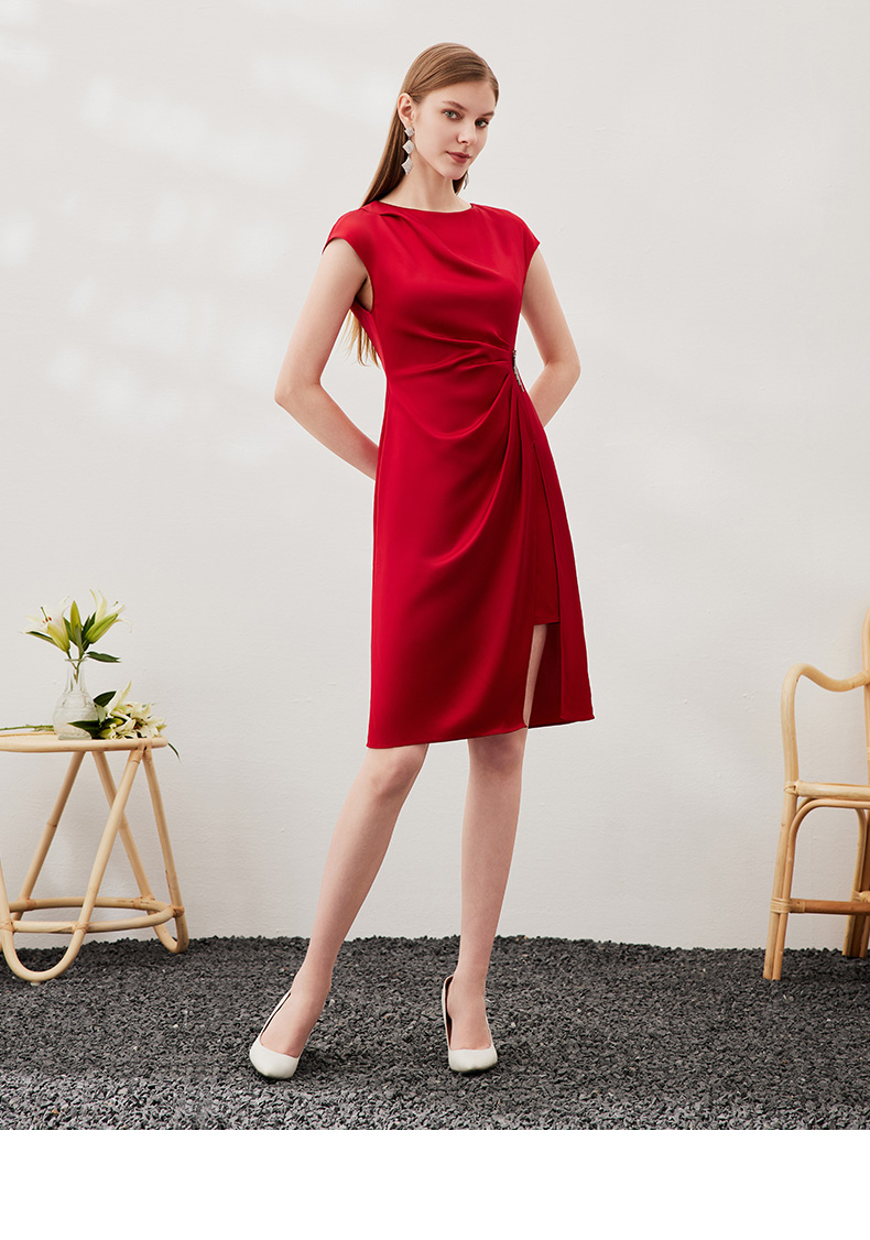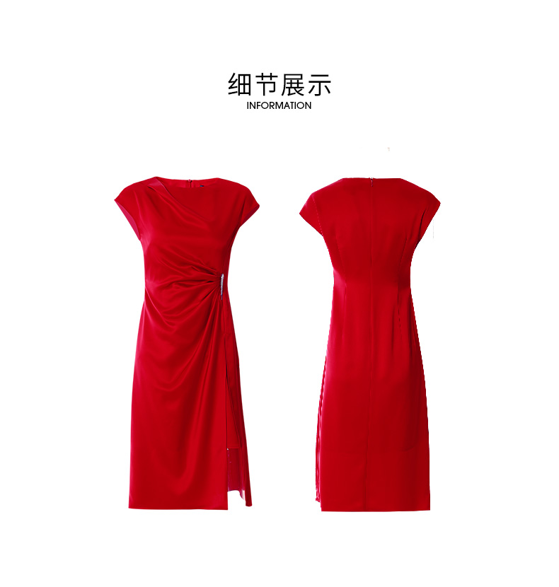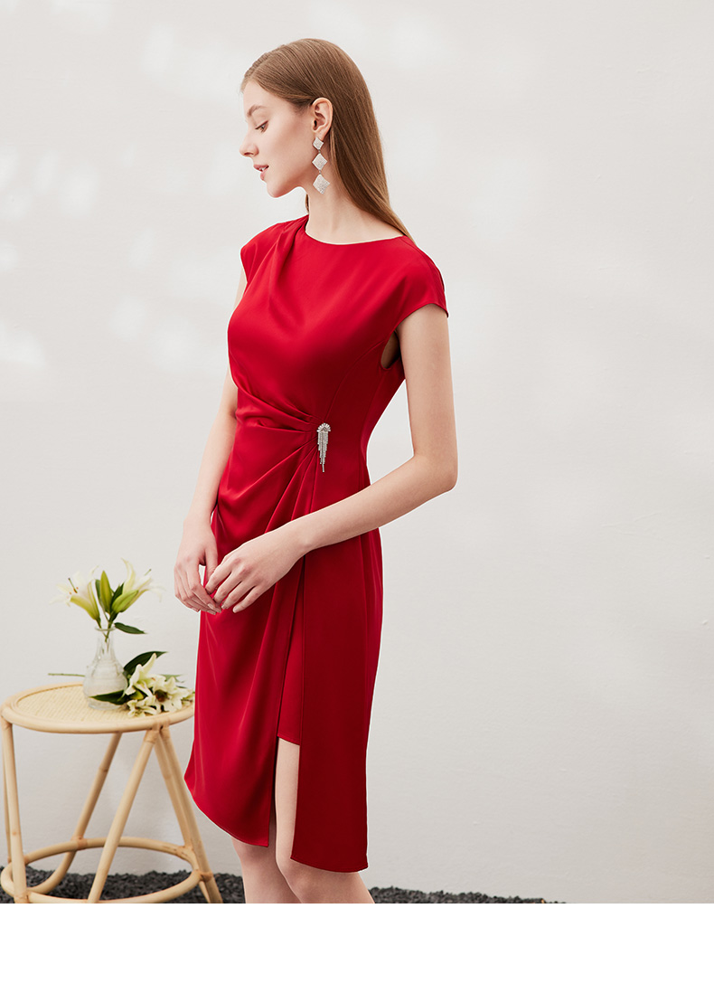 EITIE爱特爱春季新款不规则开衩修身红色飞袖礼服连衣裙6977612