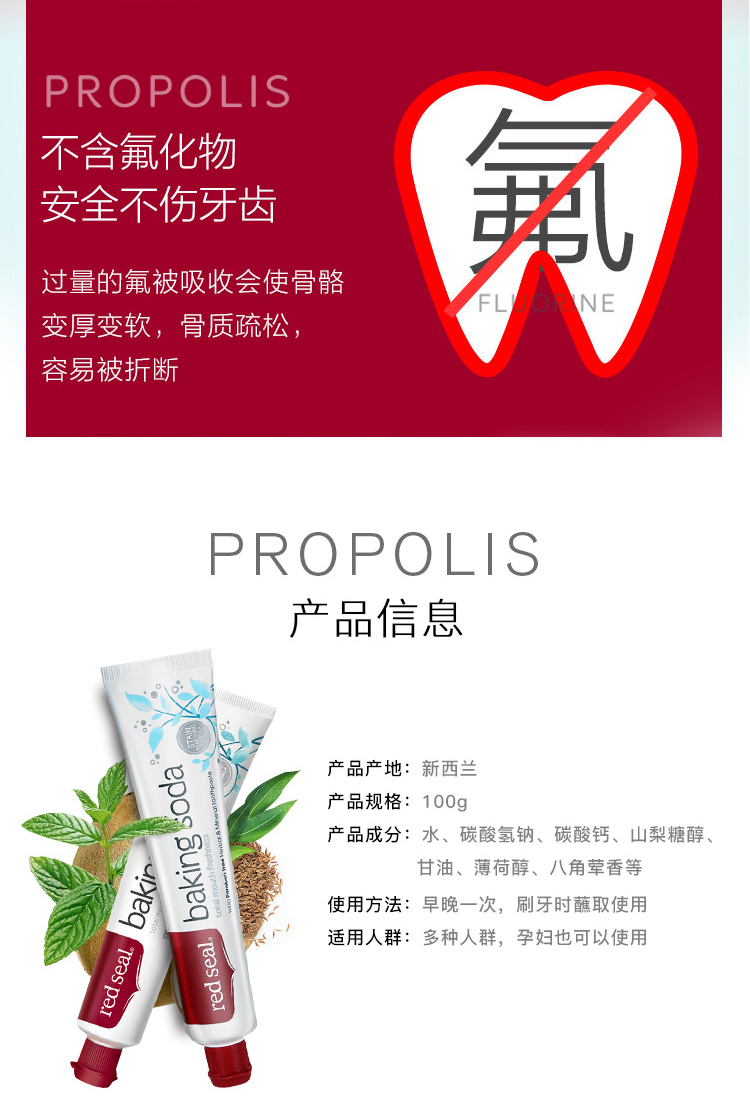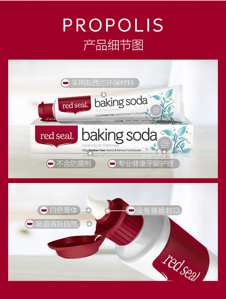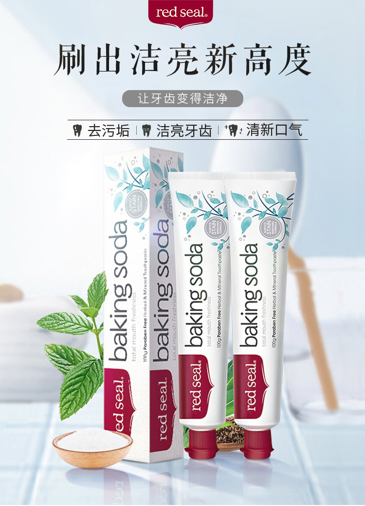 新西兰红印 Red Seal 小苏打牙膏 100g*3 双重亮白 特含洁净微粒 增强摩擦强效去渍