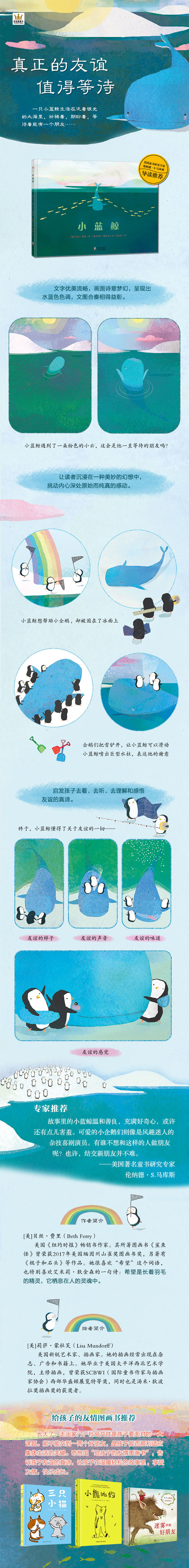 【2-5岁】小蓝鲸(奇想国当代精选)(3-10岁):温馨诗意的故事鼓励孩子去看、去听、去理解和感悟友谊的真谛,真正的友谊值得等