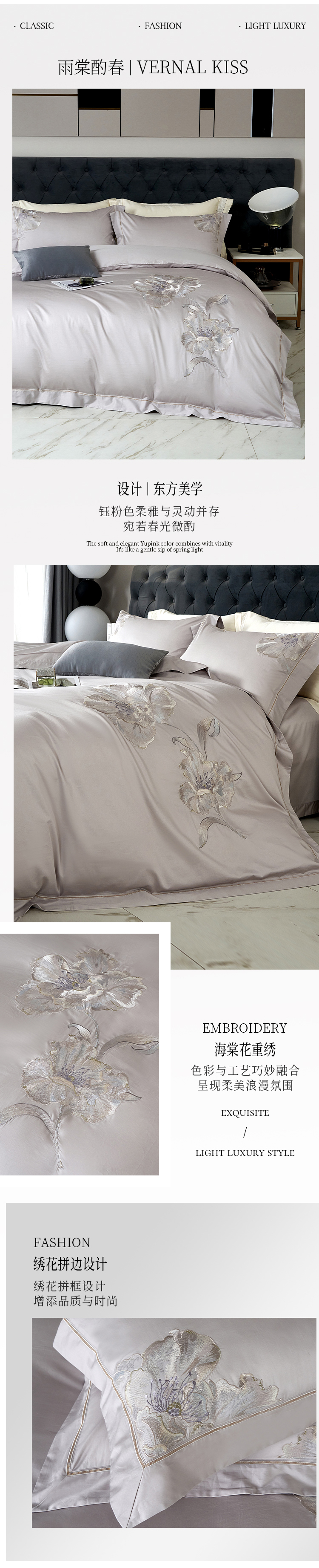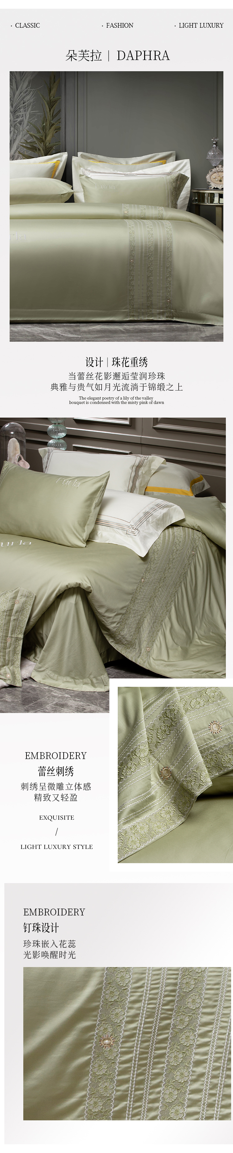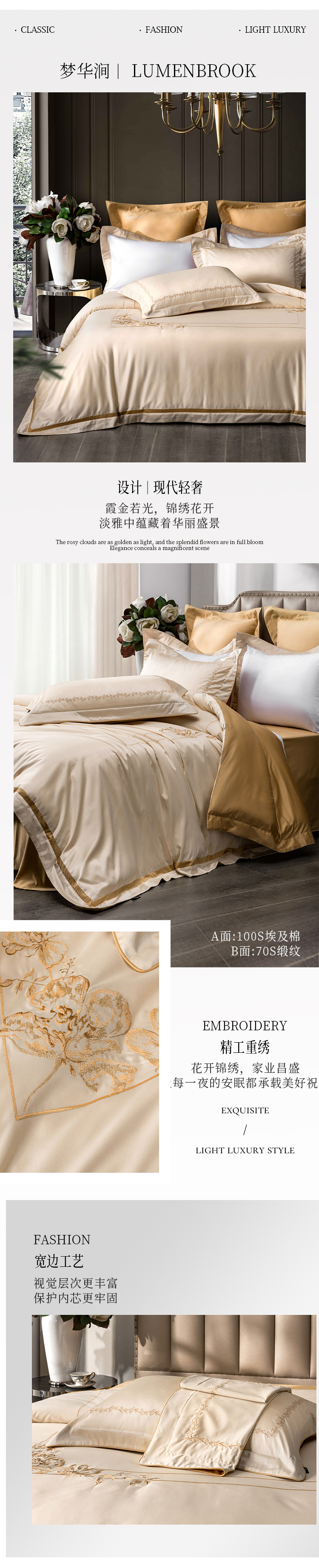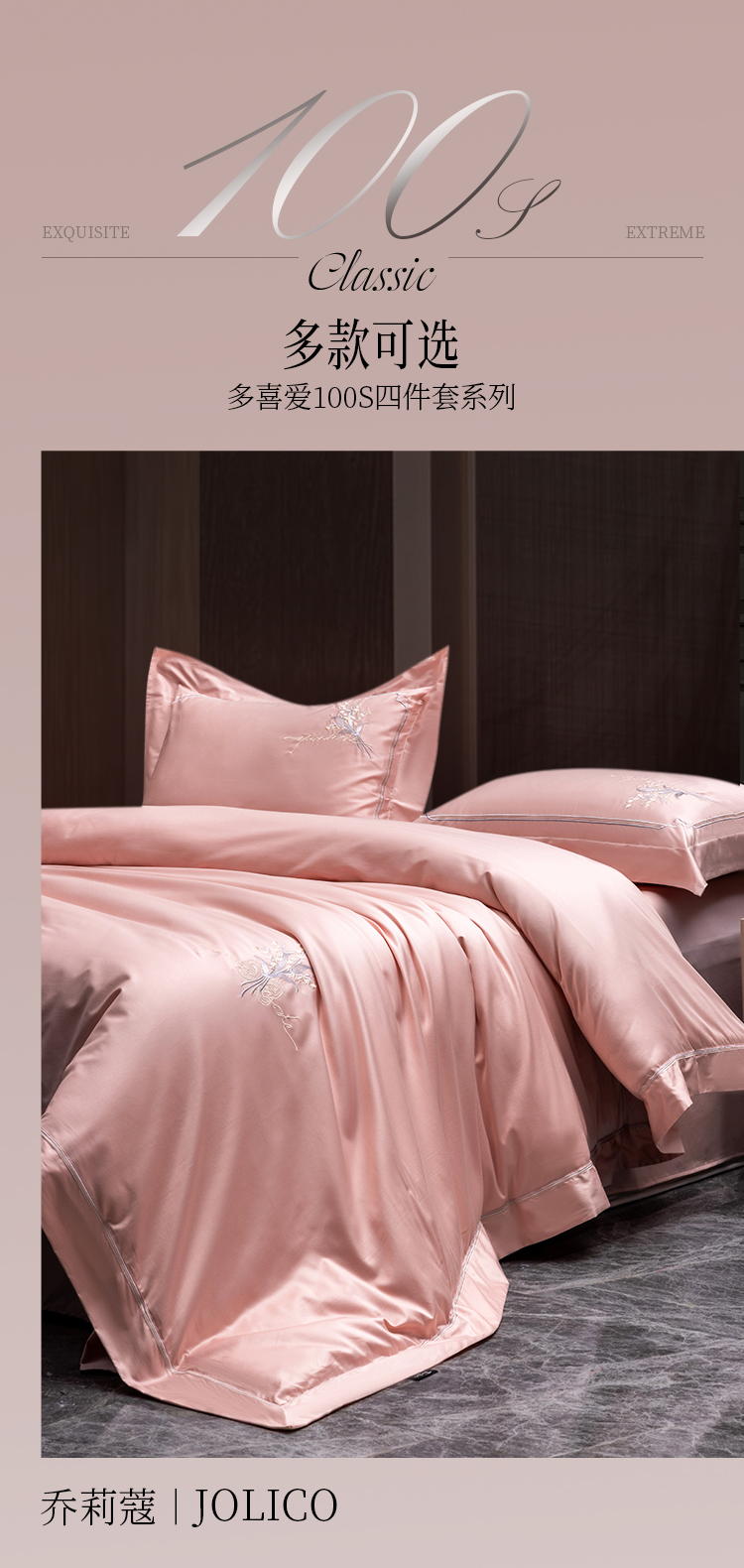 多喜爱 100S全棉云锦缎床上用品四件套乔莉蔻/澳海澜庭/雨棠酌春/茉色香绮/玉叶金枝/云琛/知澜/朵芙拉/时光幻想hl【双股长绒棉】【高支高密】【珠花重绣】【轻奢礼盒】