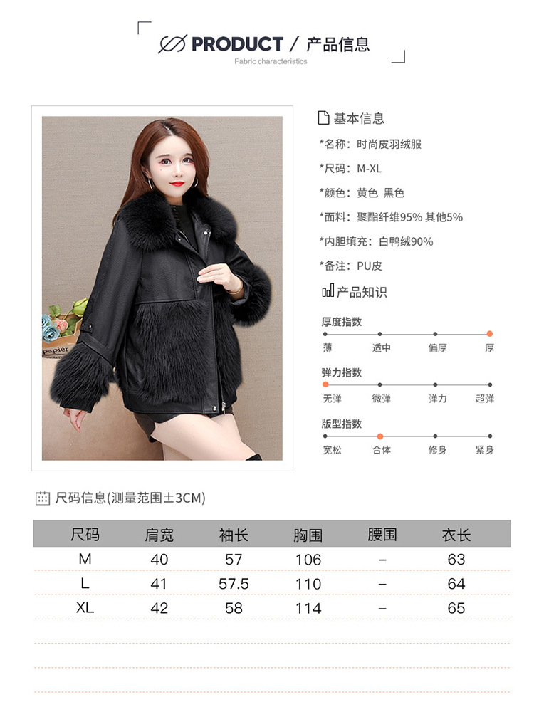 YWE A2445加厚保暖高档PU皮白鸭绒羽绒服外套