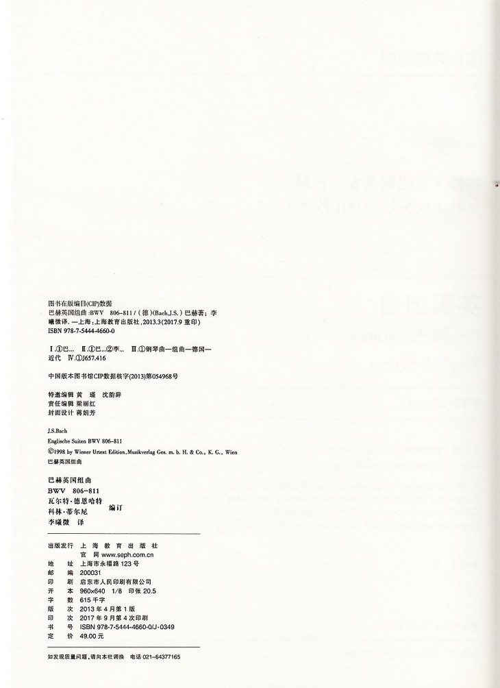 巴赫英国组曲(BWV806-811)
