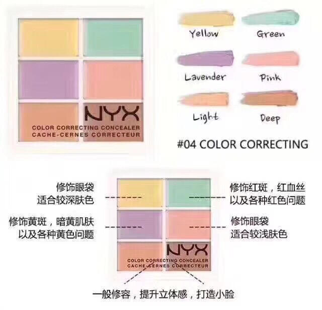 NYX六色隐形轻盈遮瑕膏調色板(834722)