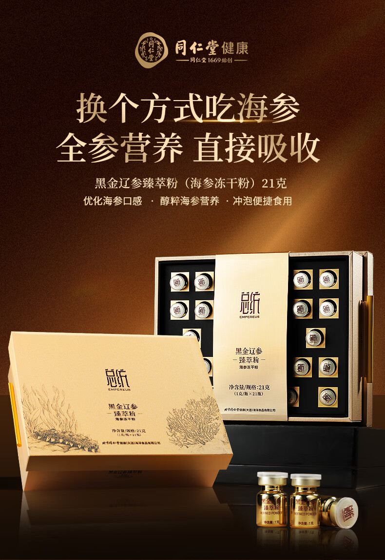 【正宗同仁堂品牌】北京同仁堂 黑金辽刺参臻萃粉(海参冻干粉) 42克 微颗粒营养易吸收 精选大连海域原料海参SY