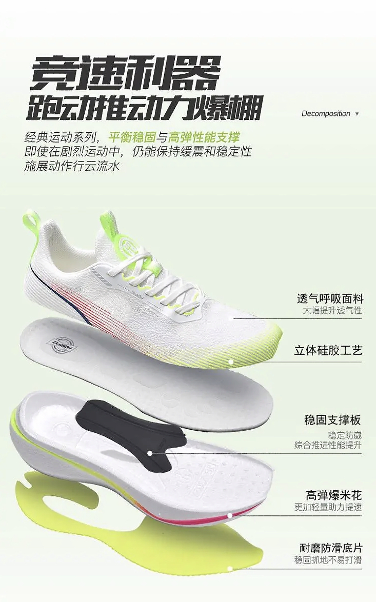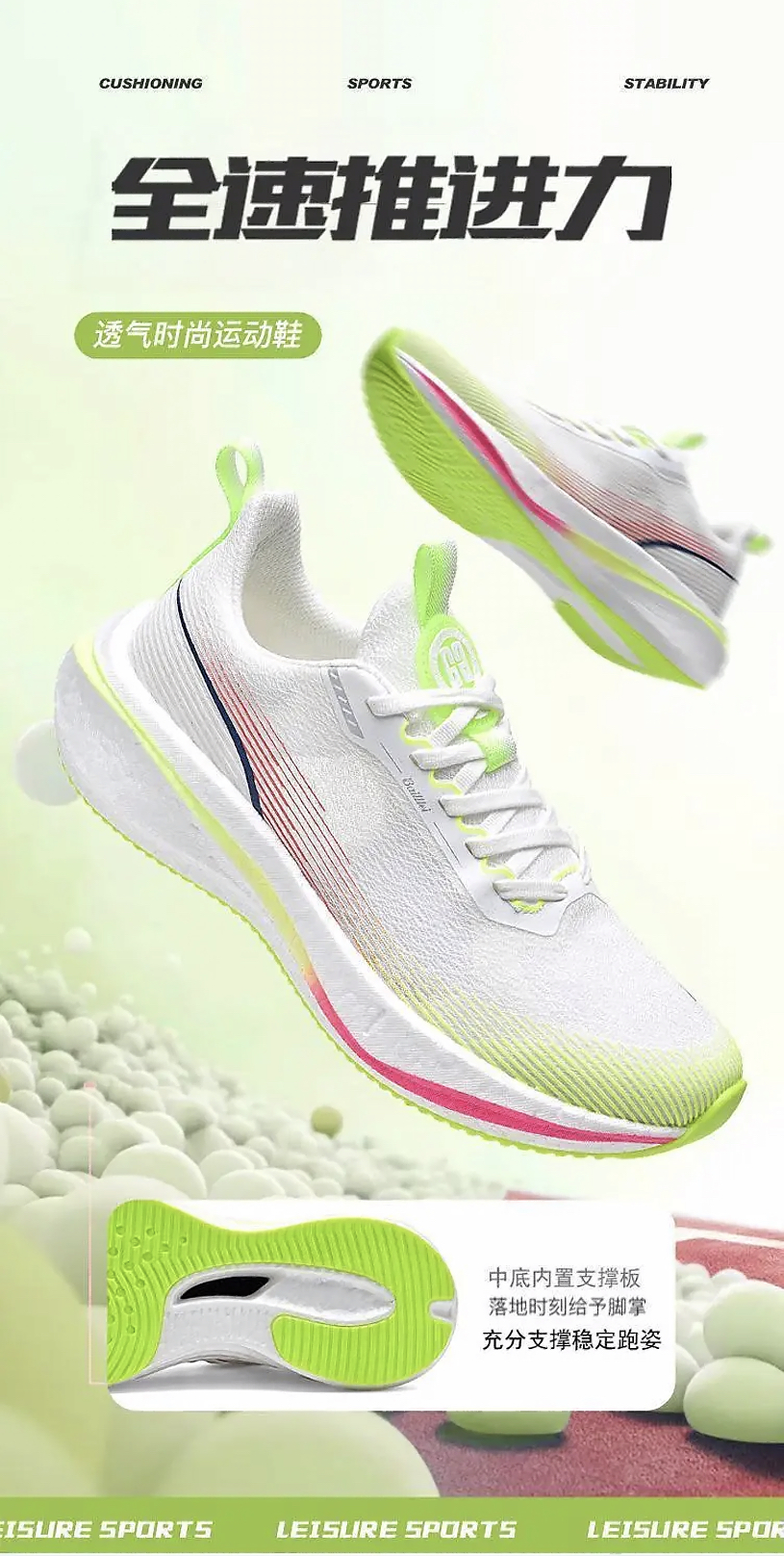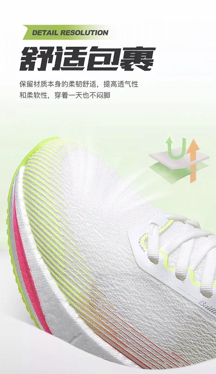 Bailllei 夏季新款 爆米花碳板跑鞋 莱卡冰丝鞋面 百搭透气 轻便软底跑步减震运动鞋