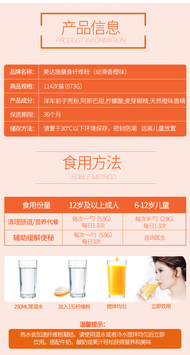 澳洲Metamucil美达施膳食纤维素粉香橙味673g