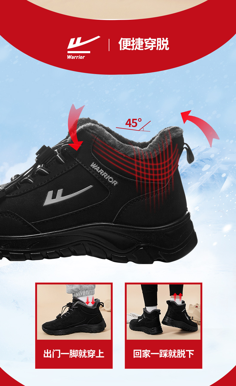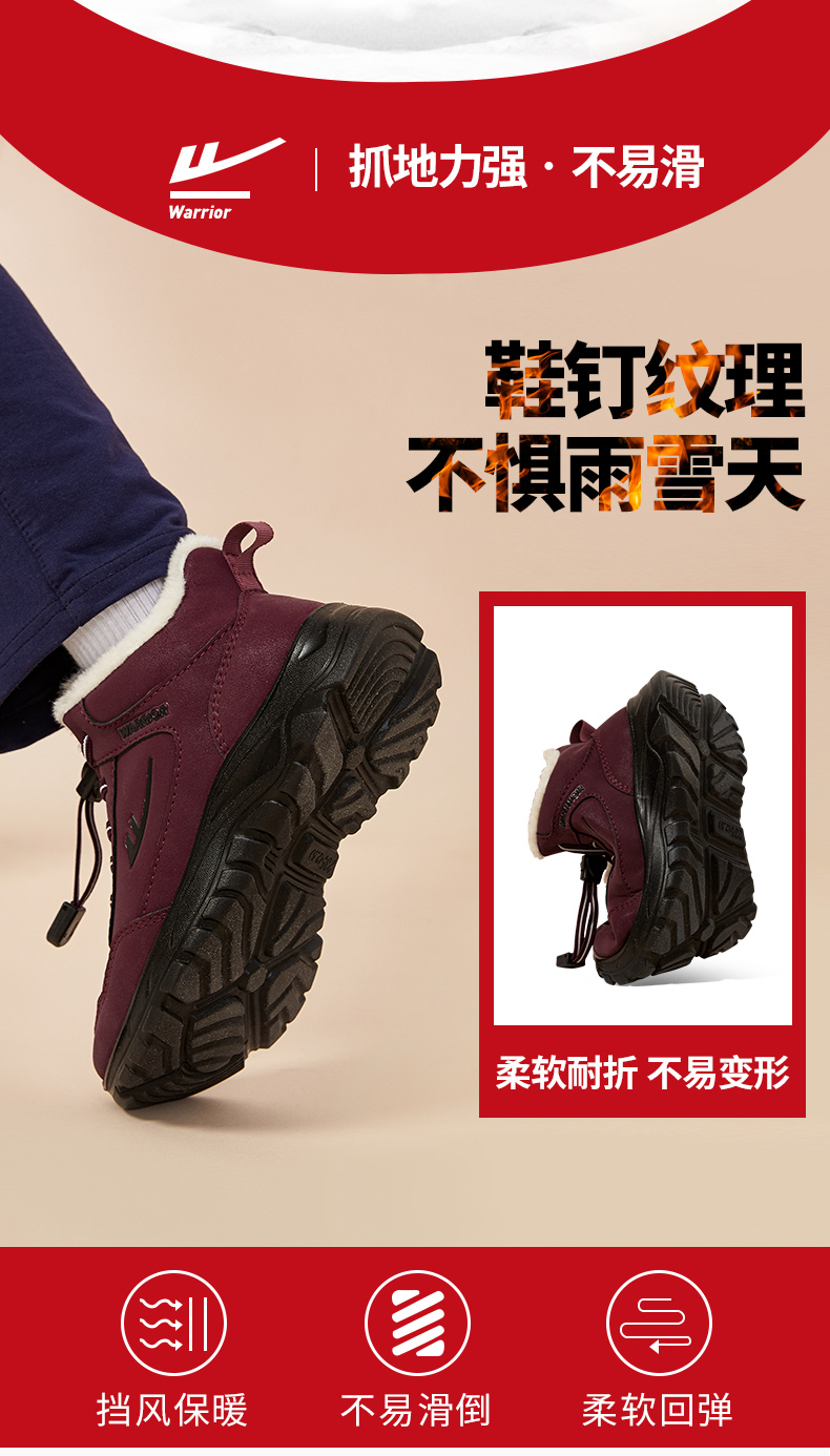回力男鞋高帮棉鞋2024新款冬季加绒加厚保暖鞋轻便软底防滑雪地靴