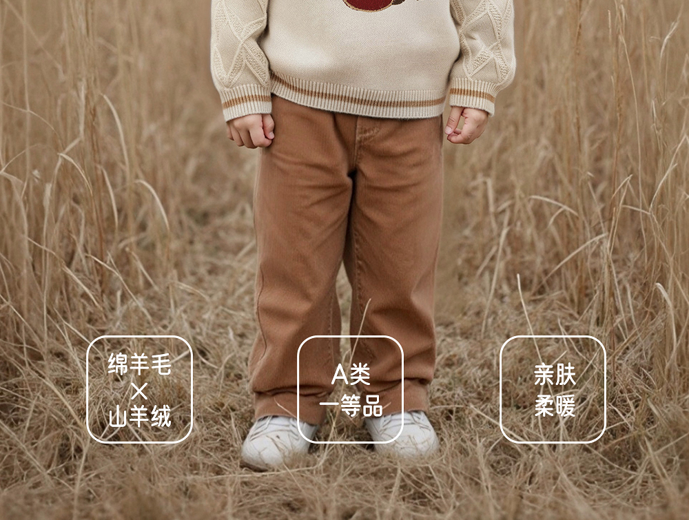 【高定系列】英氏儿童毛衣秋冬保暖男童羊毛针织衫休闲羊绒毛衣