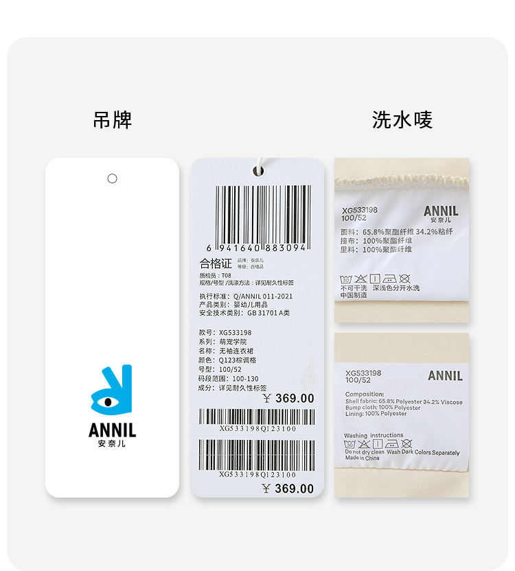 【实体店同款】女童无袖连衣裙秋季新款安奈儿童装XG533198