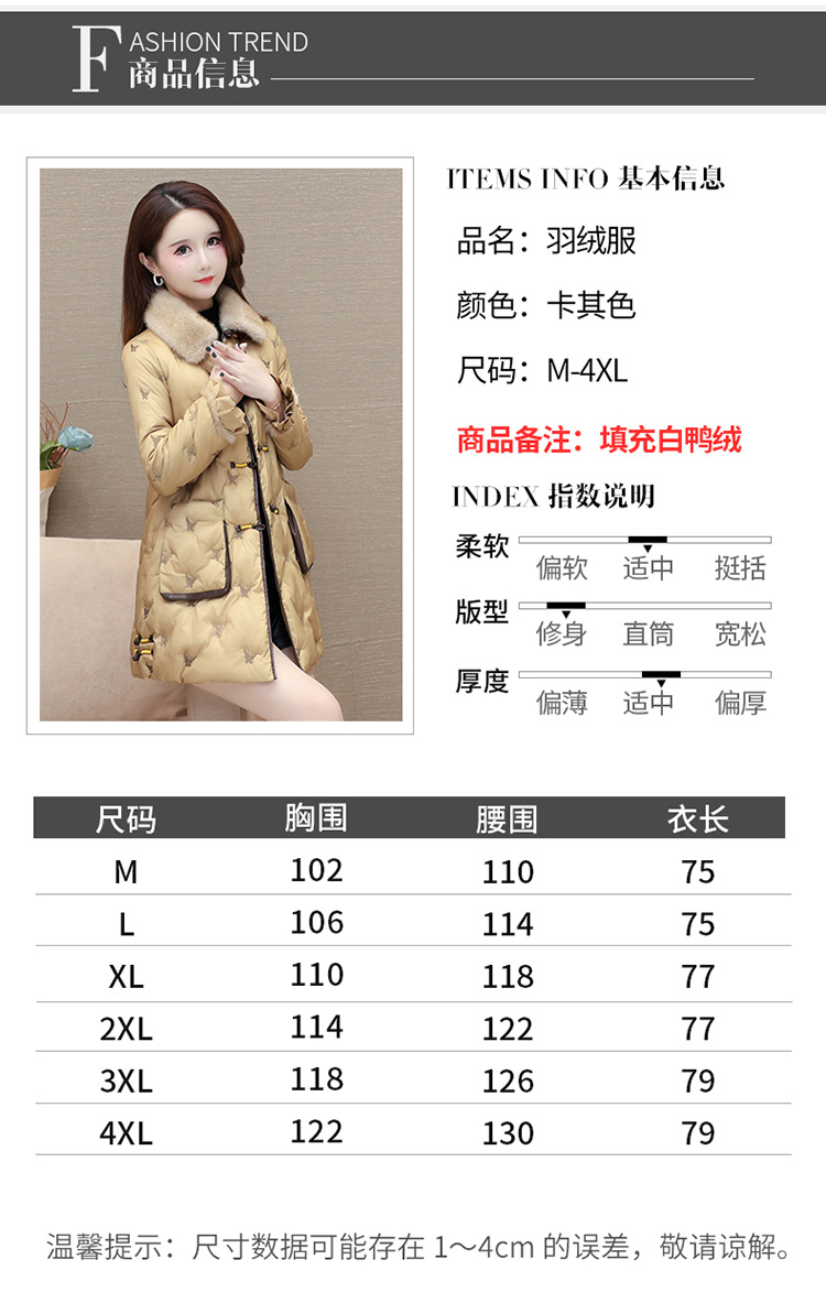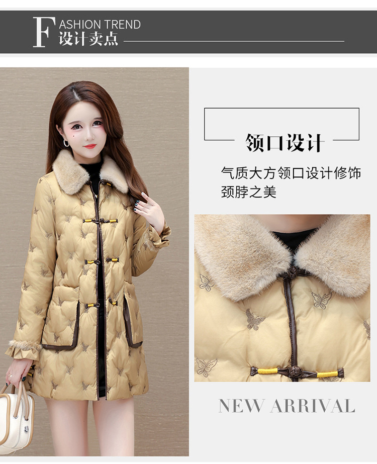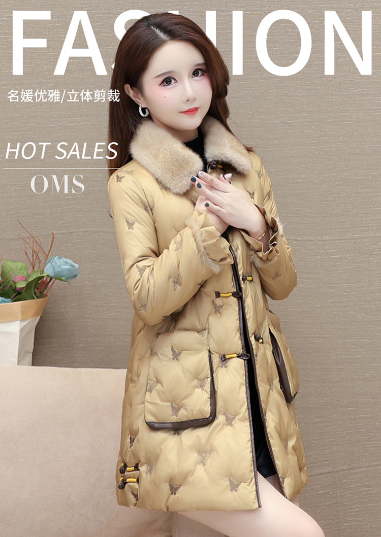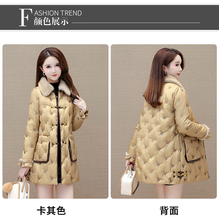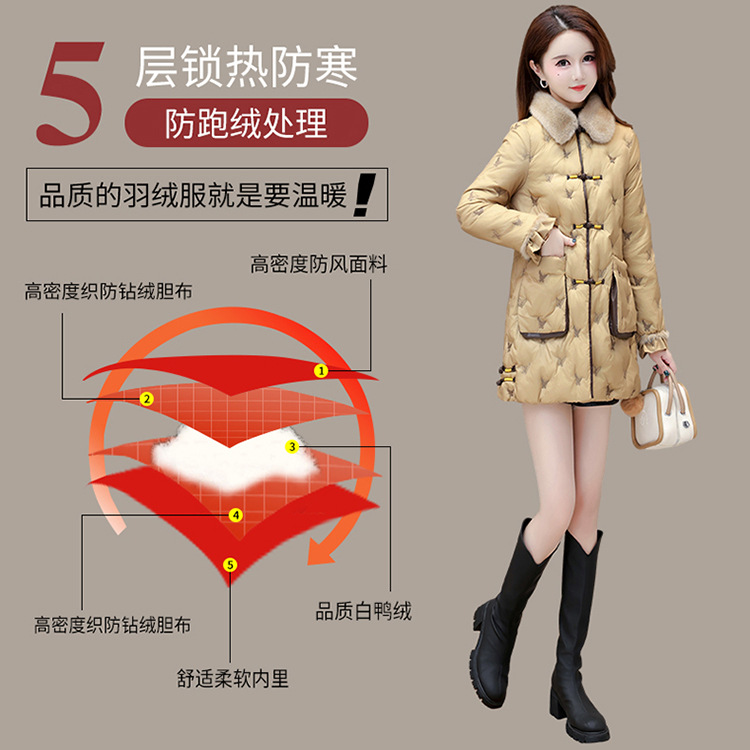 中式复古加厚保暖羽绒服,冬款长袖修身洋气妈妈装白鸭绒外套QYM-OMS-ZXB3812-L