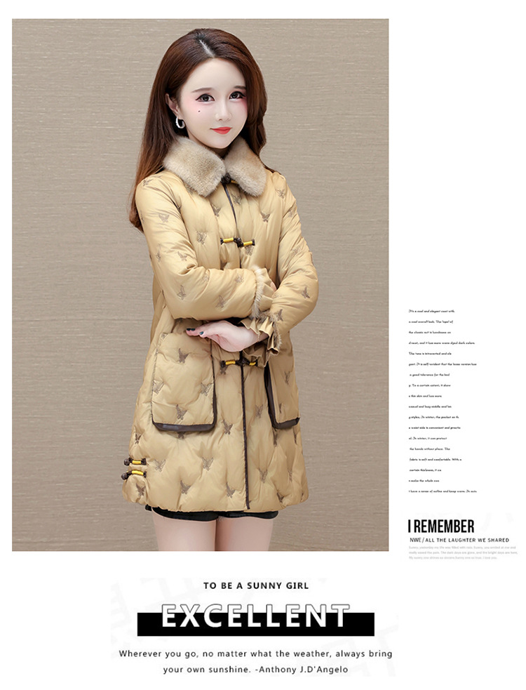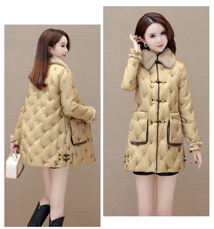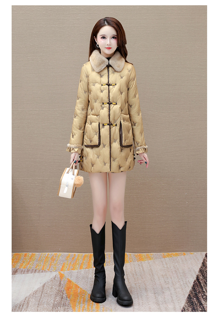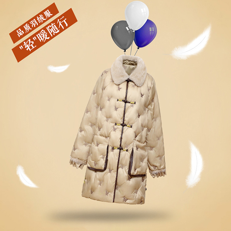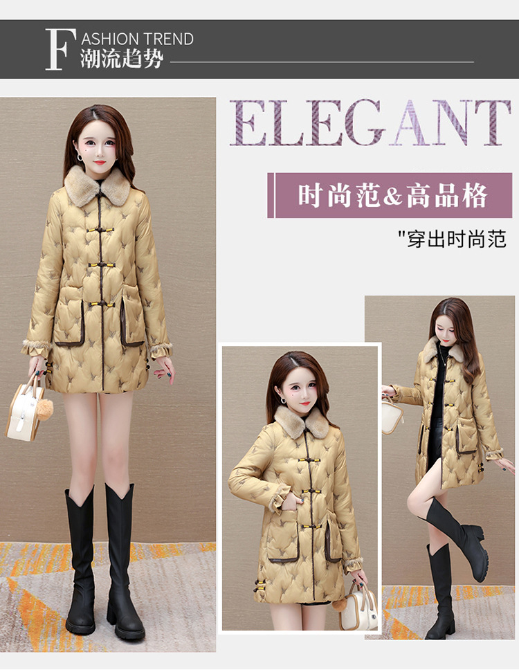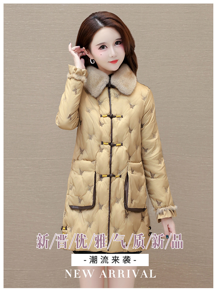 中式复古加厚保暖羽绒服,冬款长袖修身洋气妈妈装白鸭绒外套QYM-OMS-ZXB3812-L