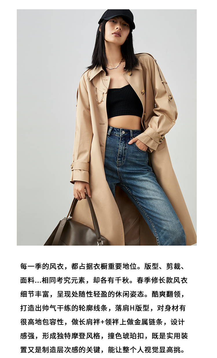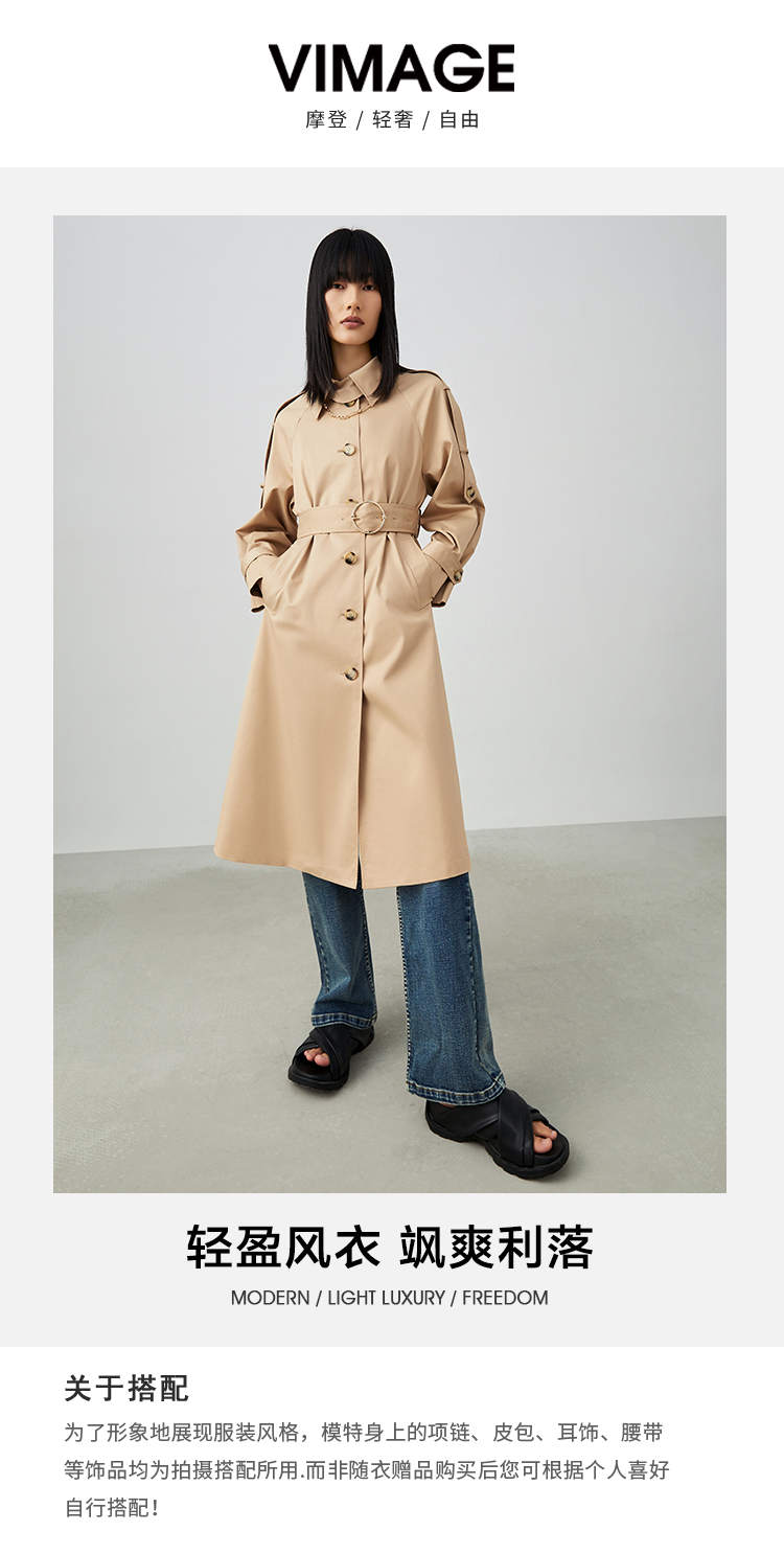VIMAGE/纬漫纪春季新款束腰帅气中长款风衣外套V1704302