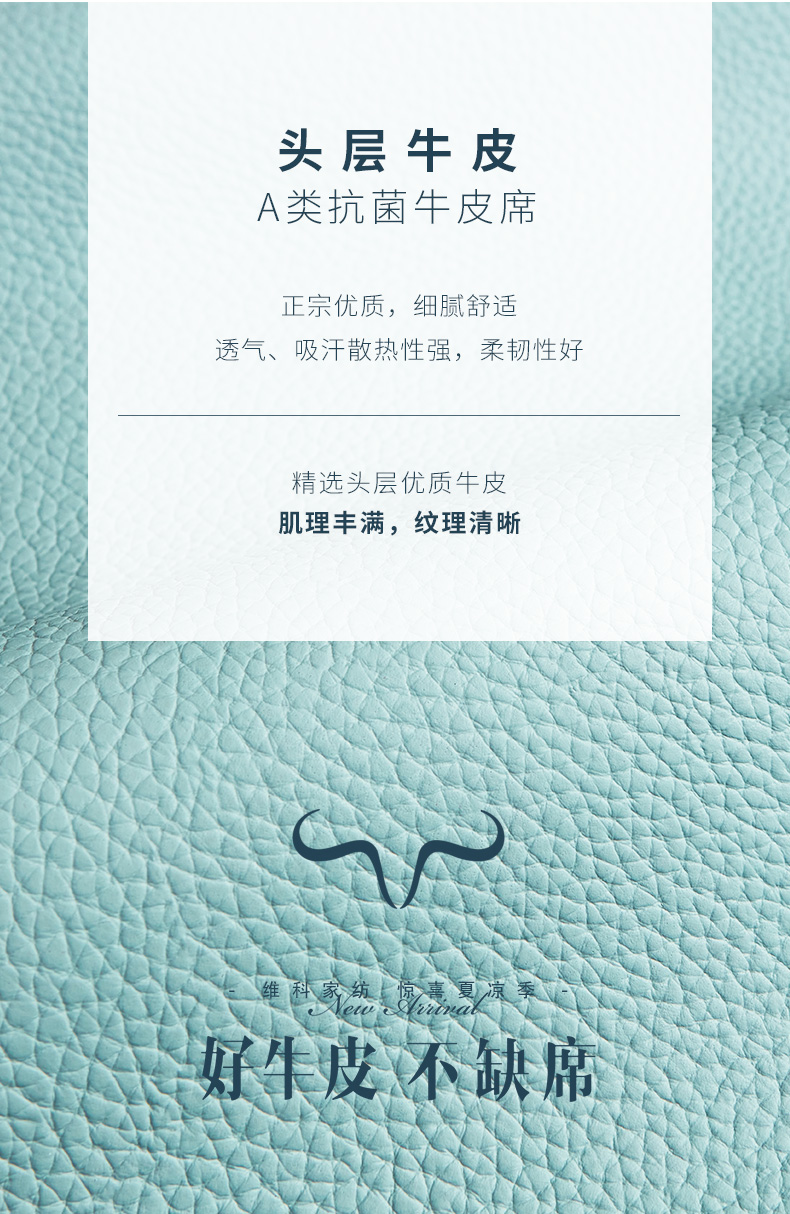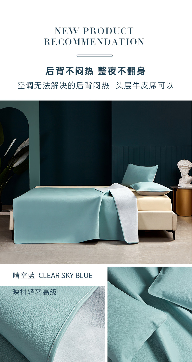 【维科家纺】玉柔A类抗菌头层牛皮席-晴空蓝
