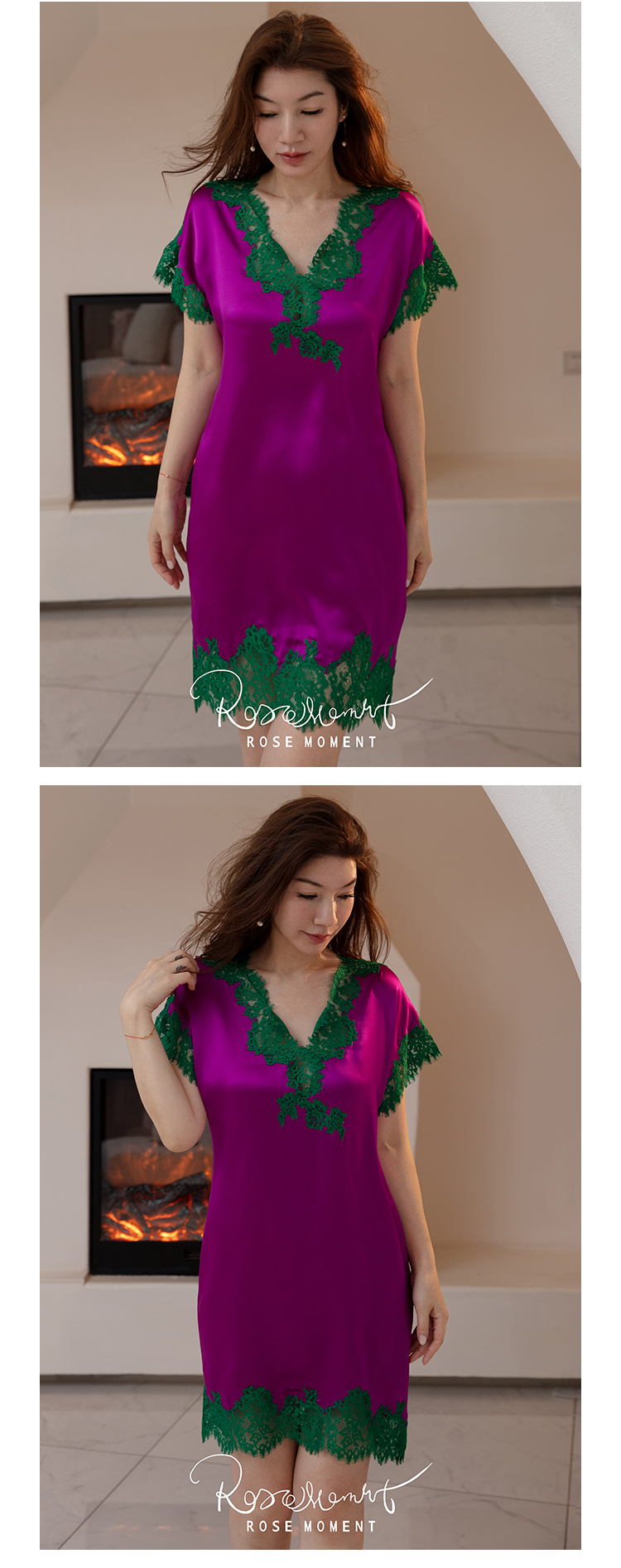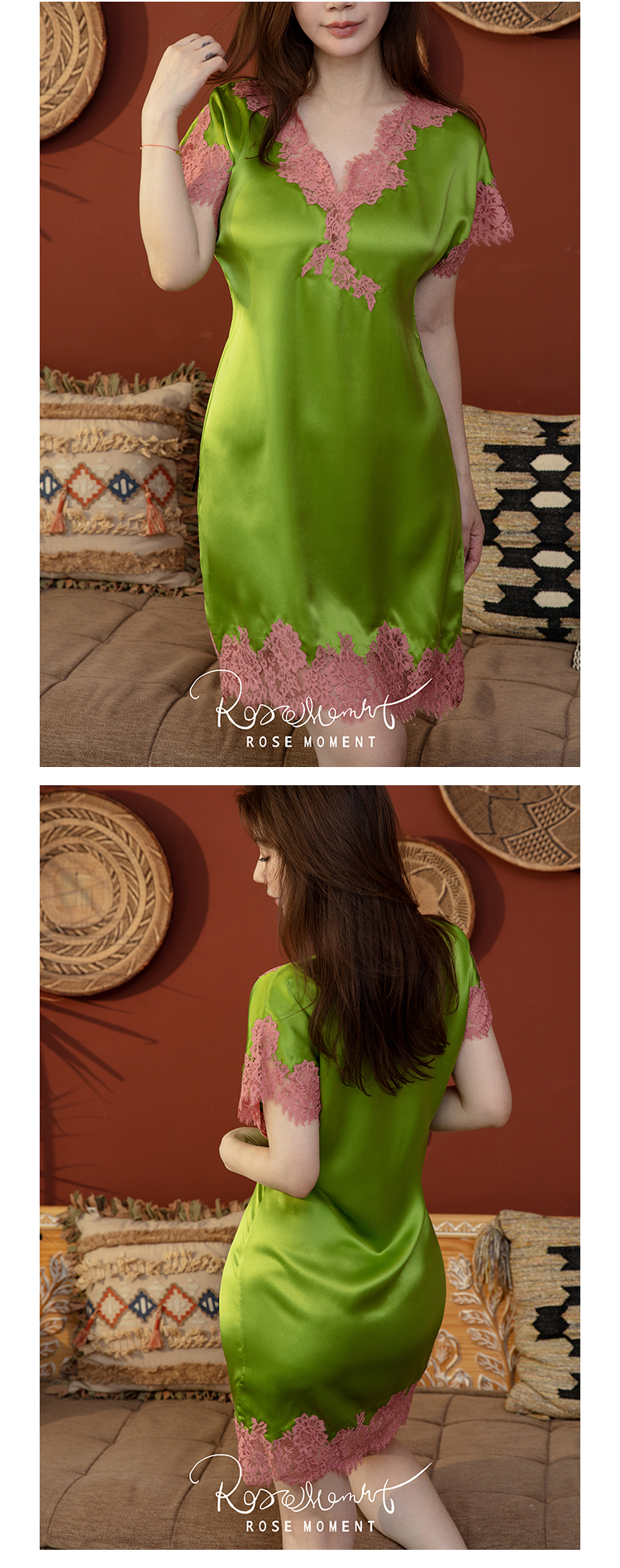 氛围感前开叉自带气质真丝长袍 P240828