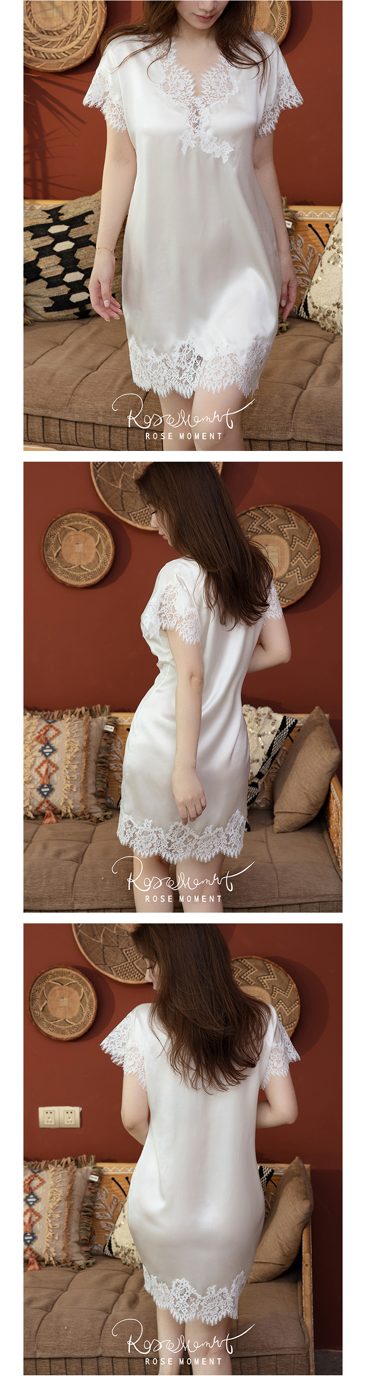 烂花绡轻盈微透露背中款真丝睡裙 DD241