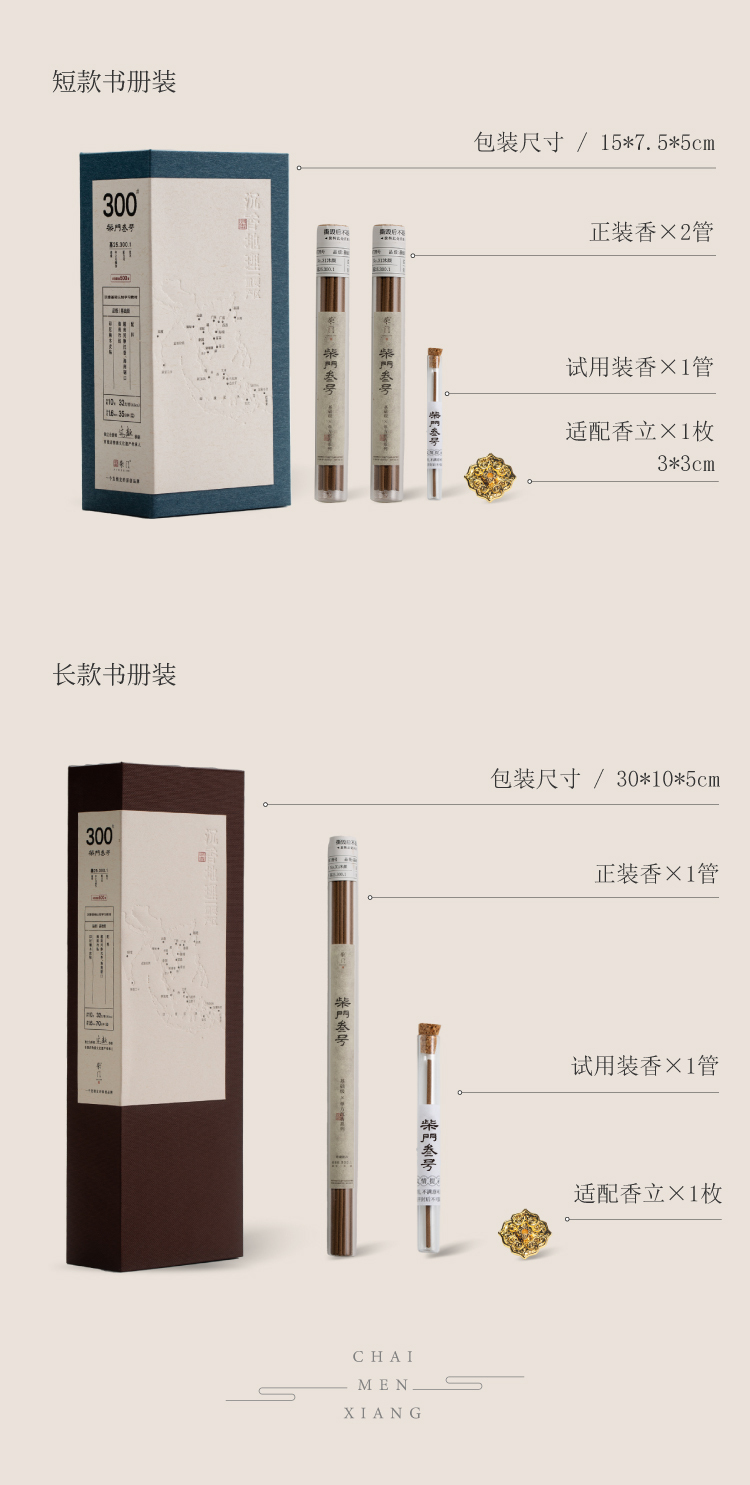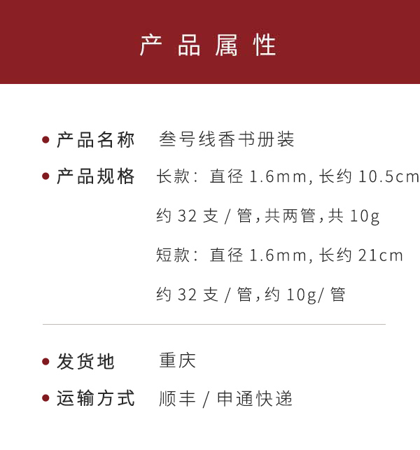 叁号线香书册装 百元级口粮香 长短双规格 家用出行自由选择