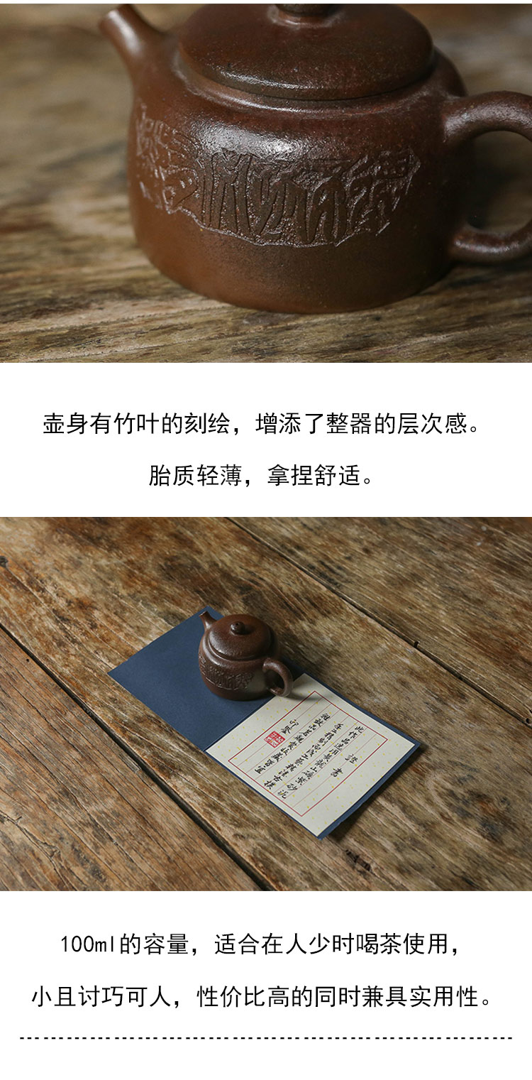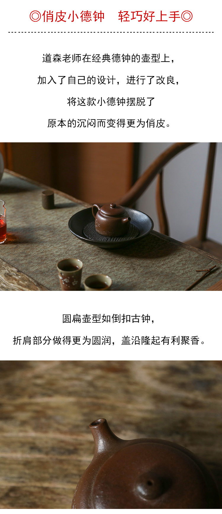 茶香记 九谷造物紫泥柴烧小德钟100ml紫砂壶茶壶原矿紫泥自然柴烧