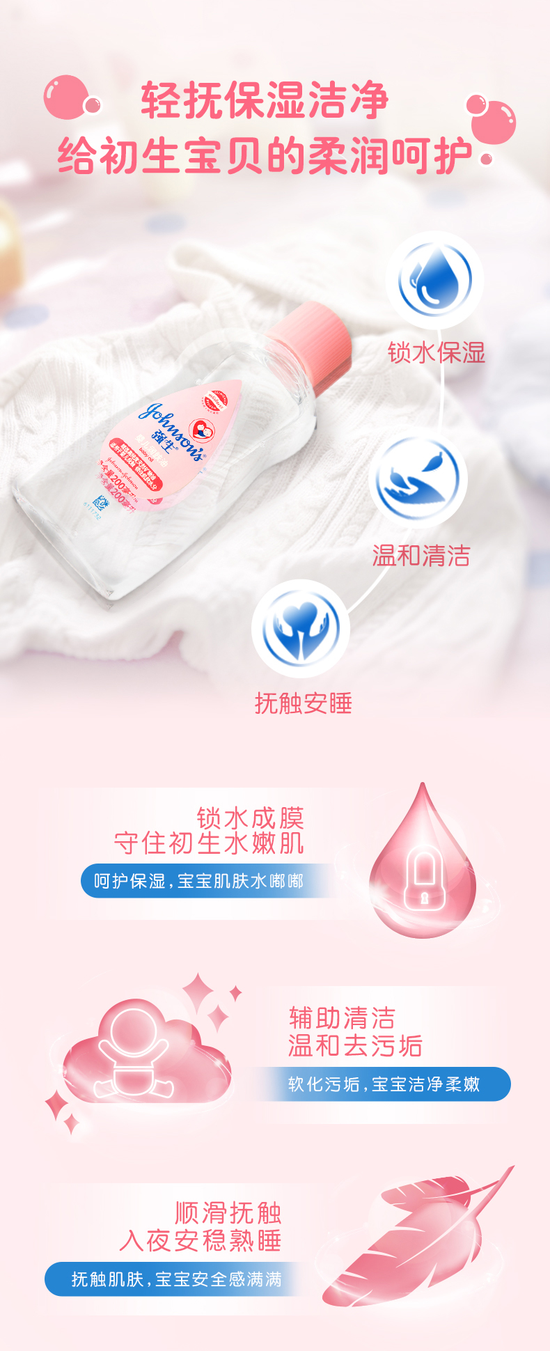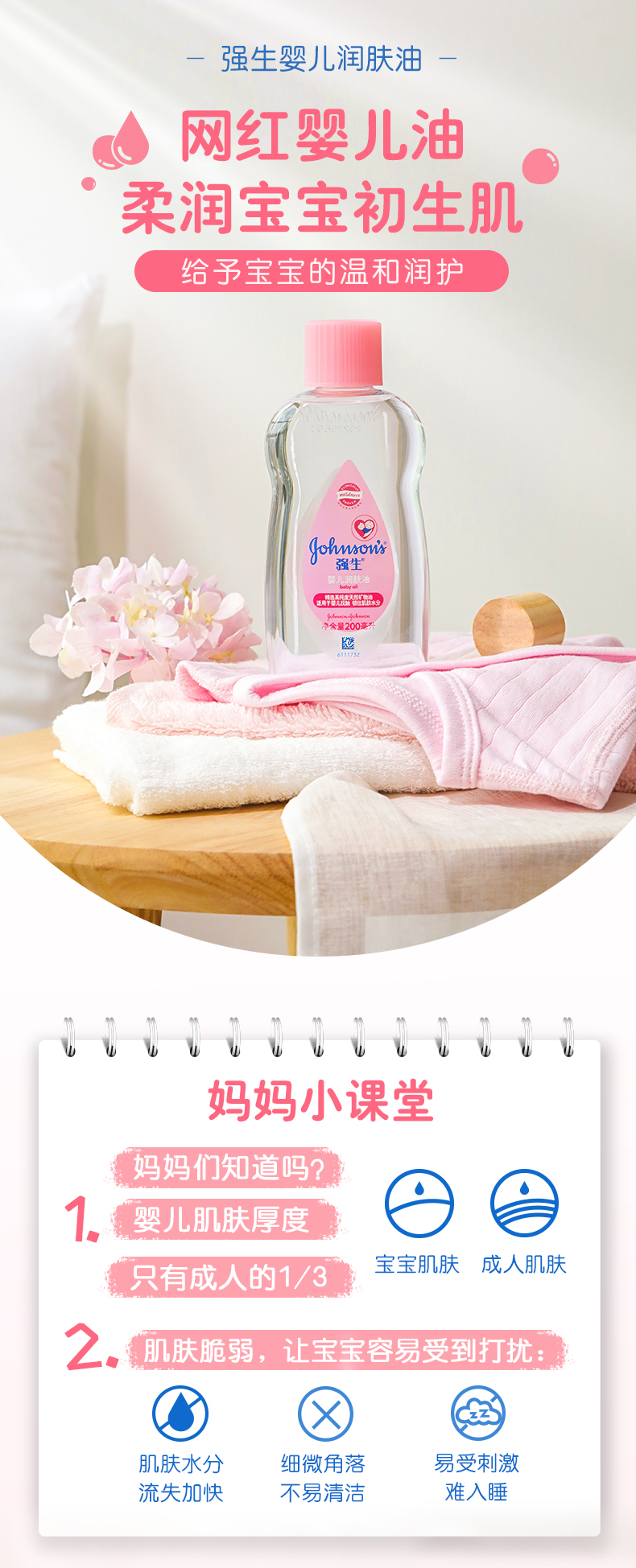 【门店直发 支持同城配送】强生婴儿润肤油新生儿抚触宝宝身体滋润婴儿油bb按摩油200ml/300ml