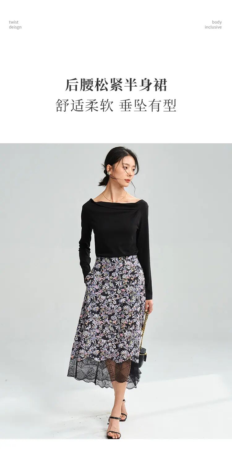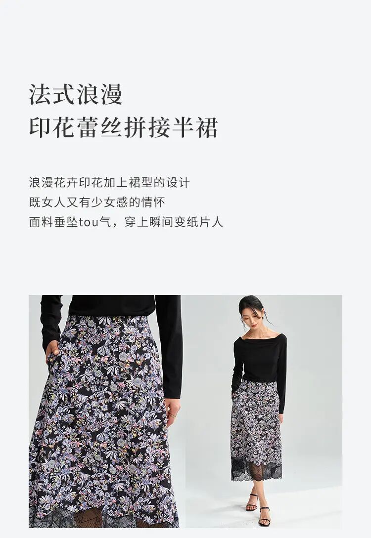 【高货sh】全新升级【铂金会员192/天猫259/差价67】(04534) 洛诗琳25春夏法式浪漫织物印花前短后长松紧半身裙