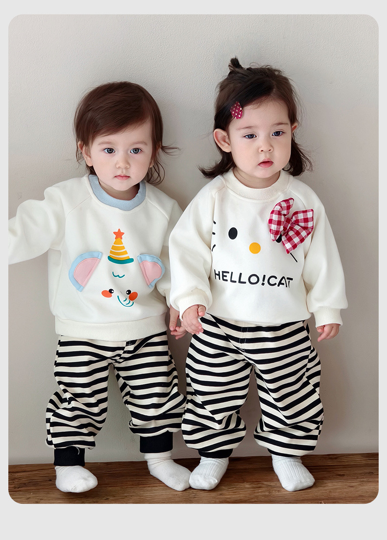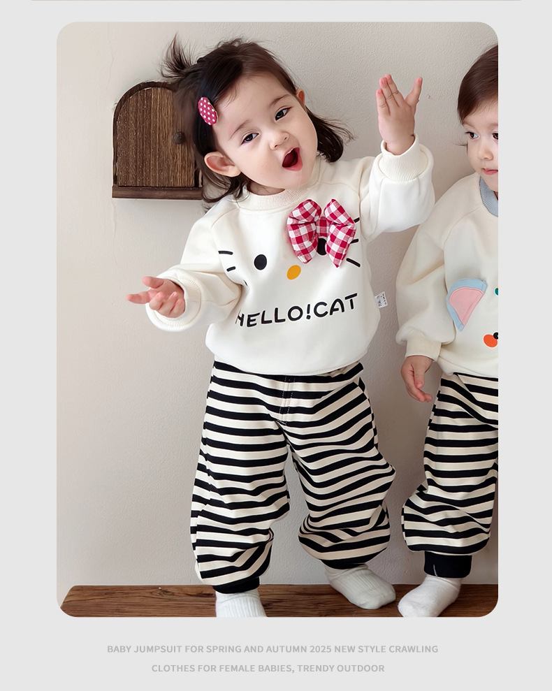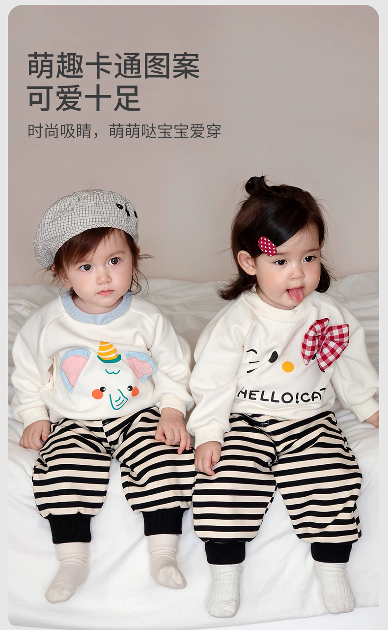 【韩系超萌秋款!A类棉更放心】女童秋季休闲套装韩版女宝宝超萌卡通长袖卫衣卫裤外出两件套。hb