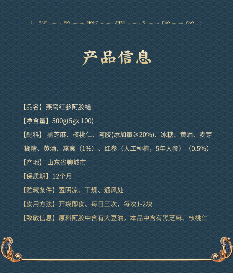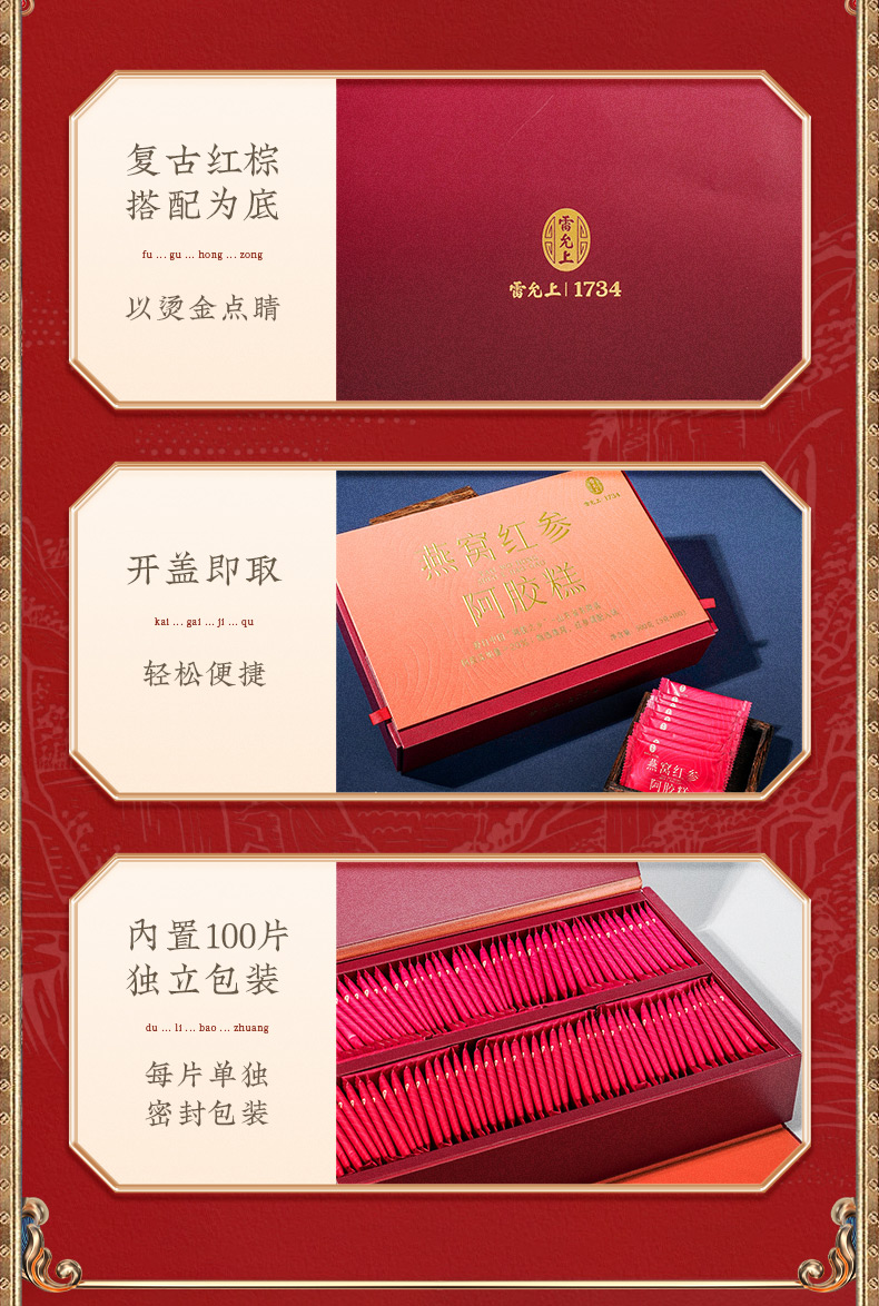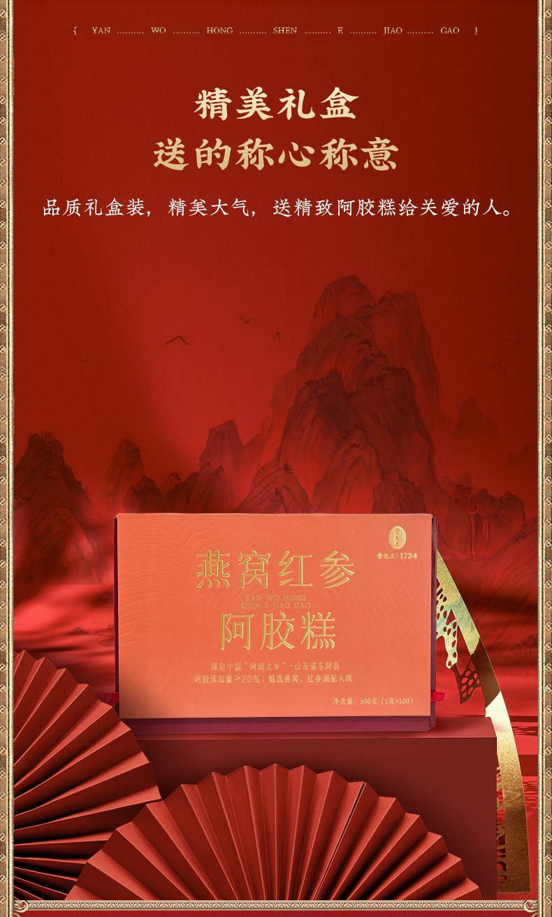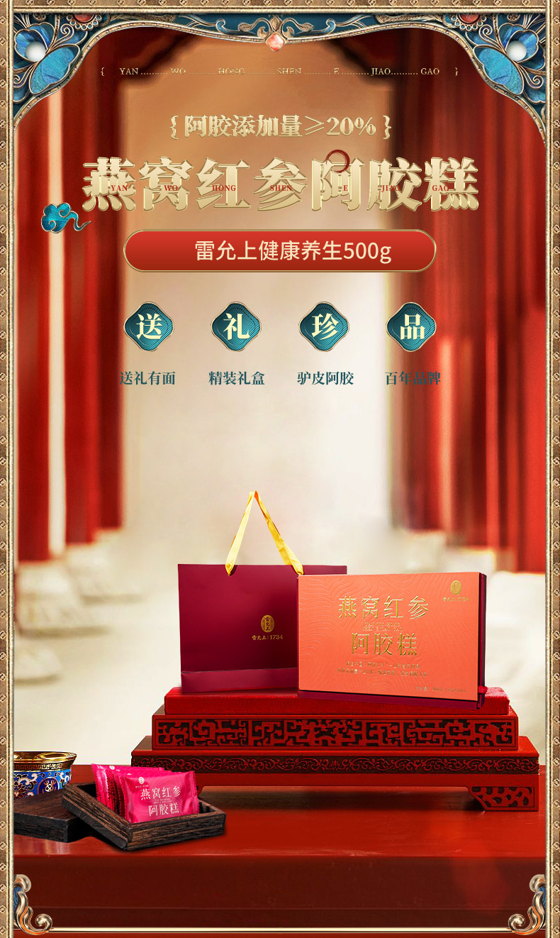雷允上直营 | 传统滋补系列 燕窝红参阿胶糕500g/盒 即食阿胶糕礼盒 加入燕窝红参三重滋养