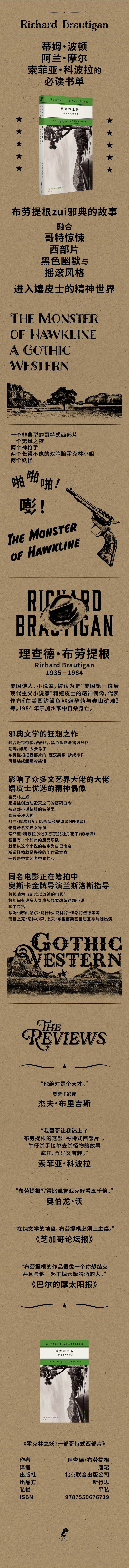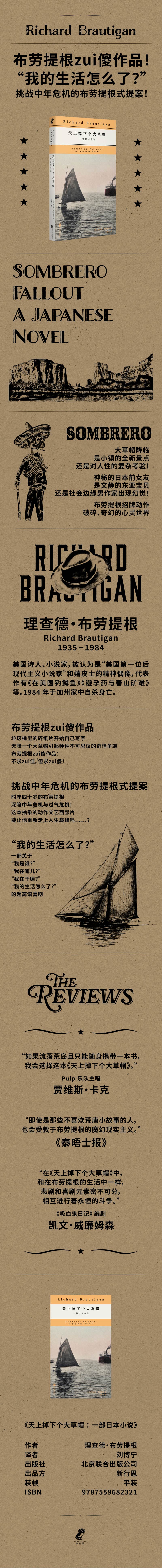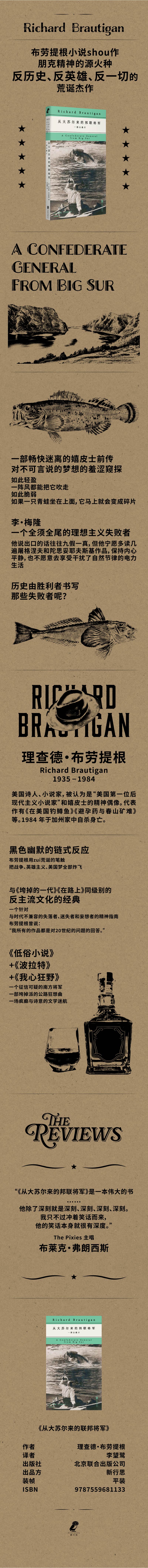 布劳提根作品五种:《从大苏尔来的邦联将军》《天上掉下个大草帽》 《去蒂华纳作手术》《梦回巴比伦》 《霍克林之妖》