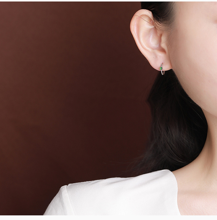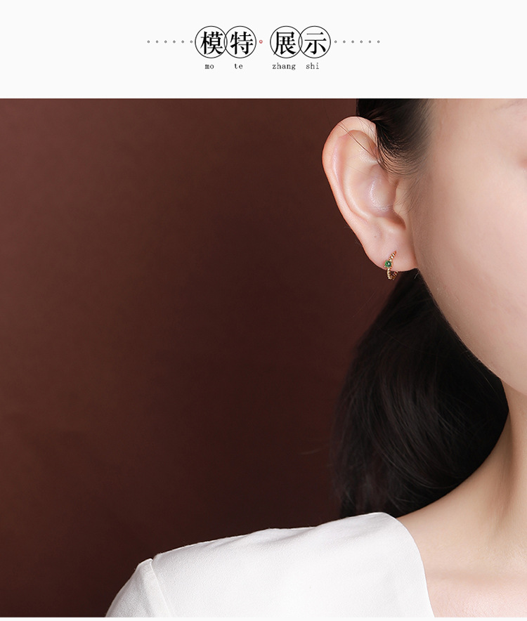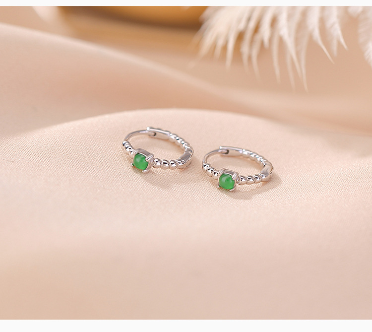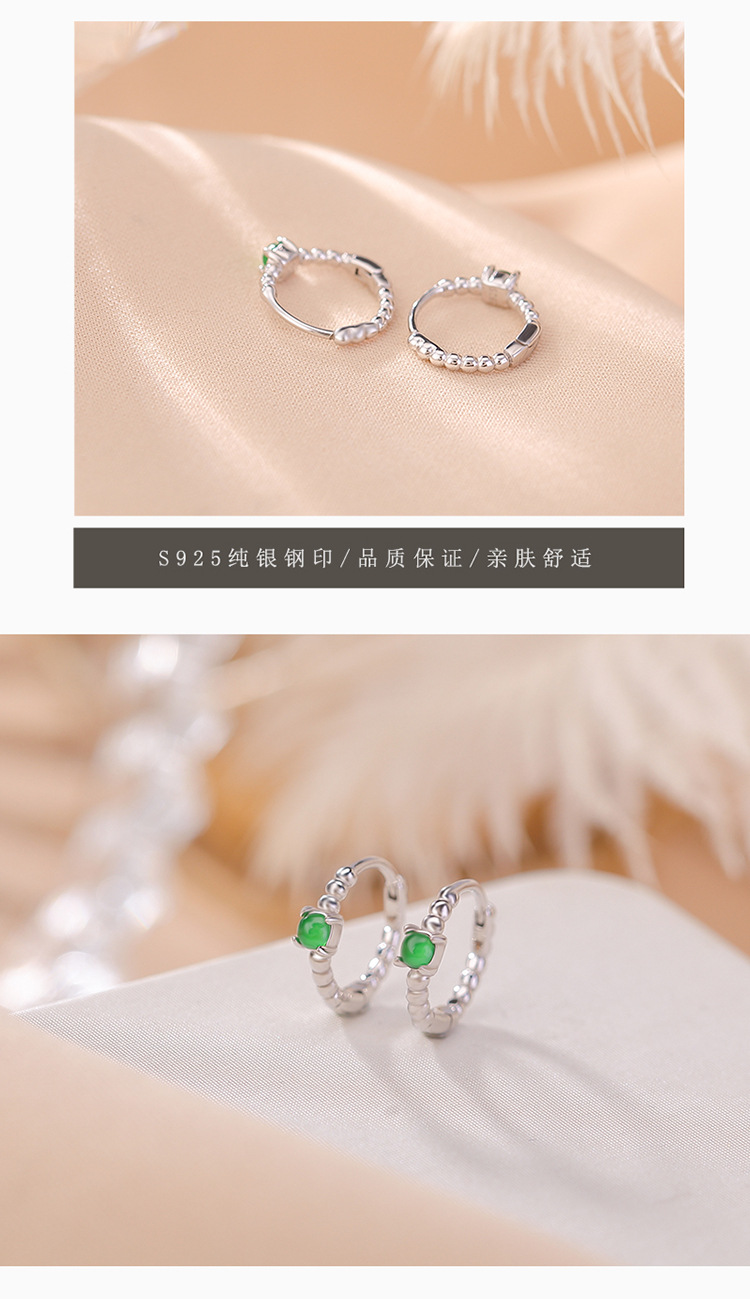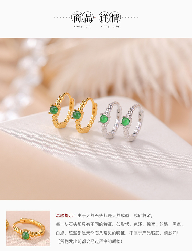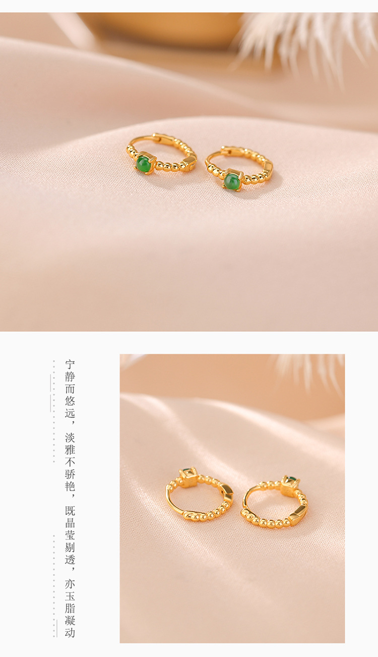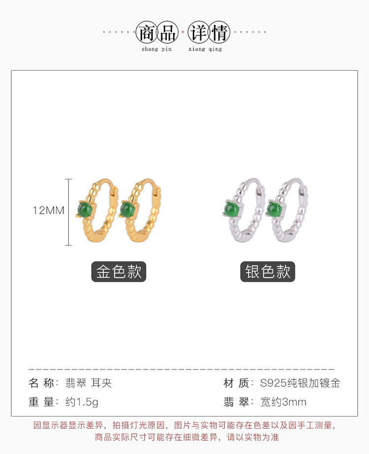 S925纯银镀金翡翠复古时尚,轻奢简约圆珠耳环气质百搭银耳夹CW-EJ00529