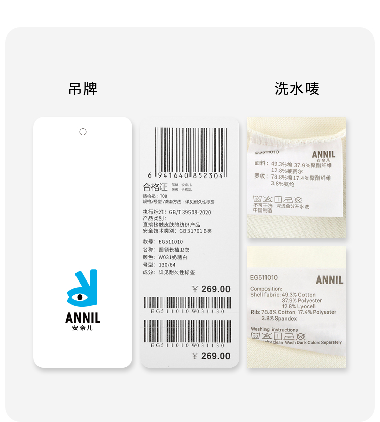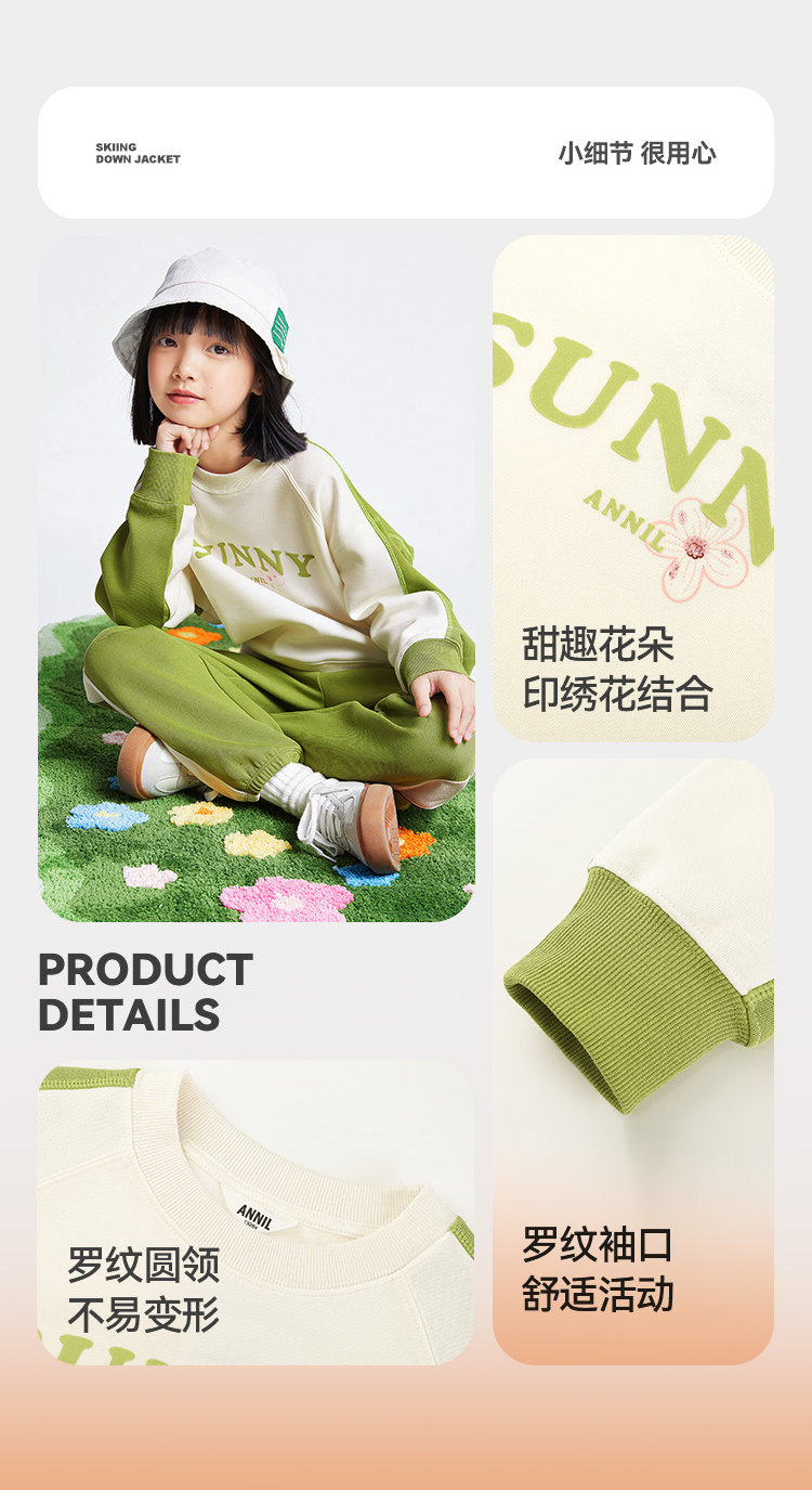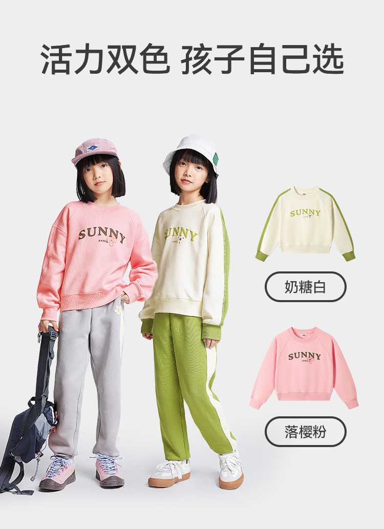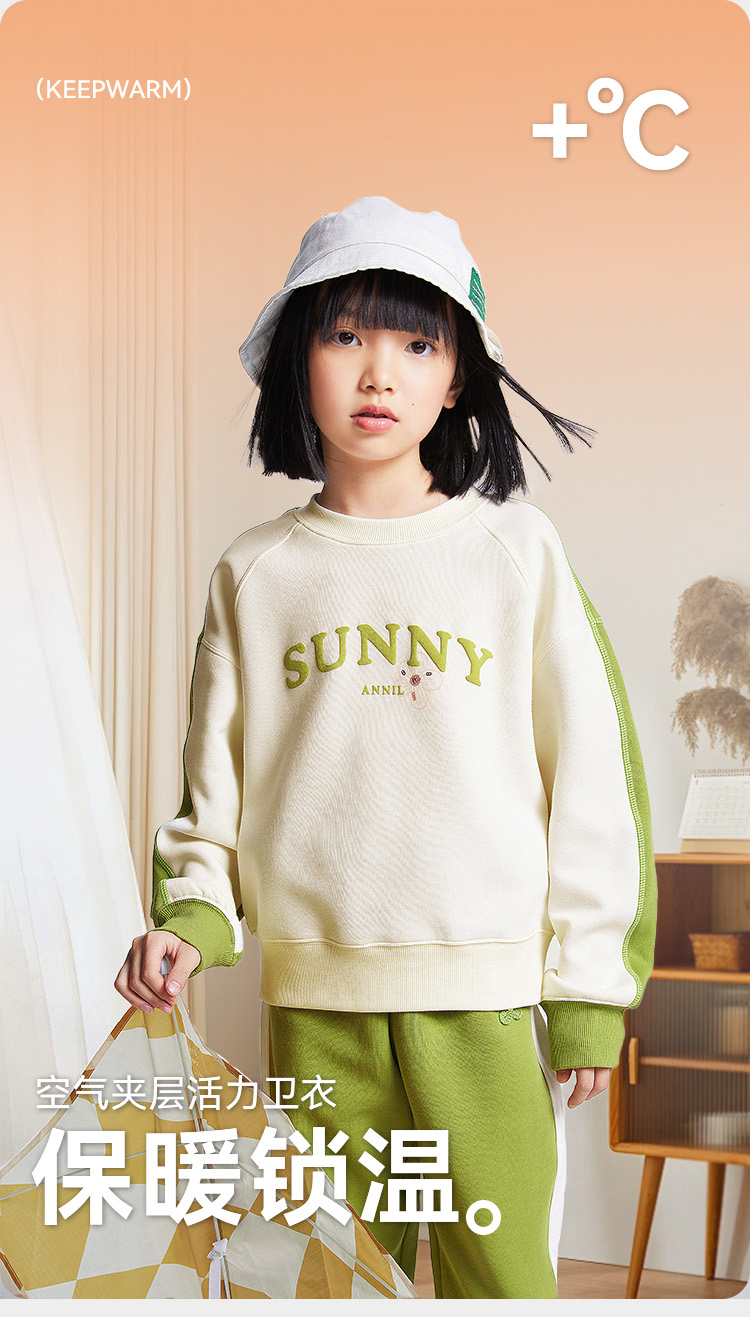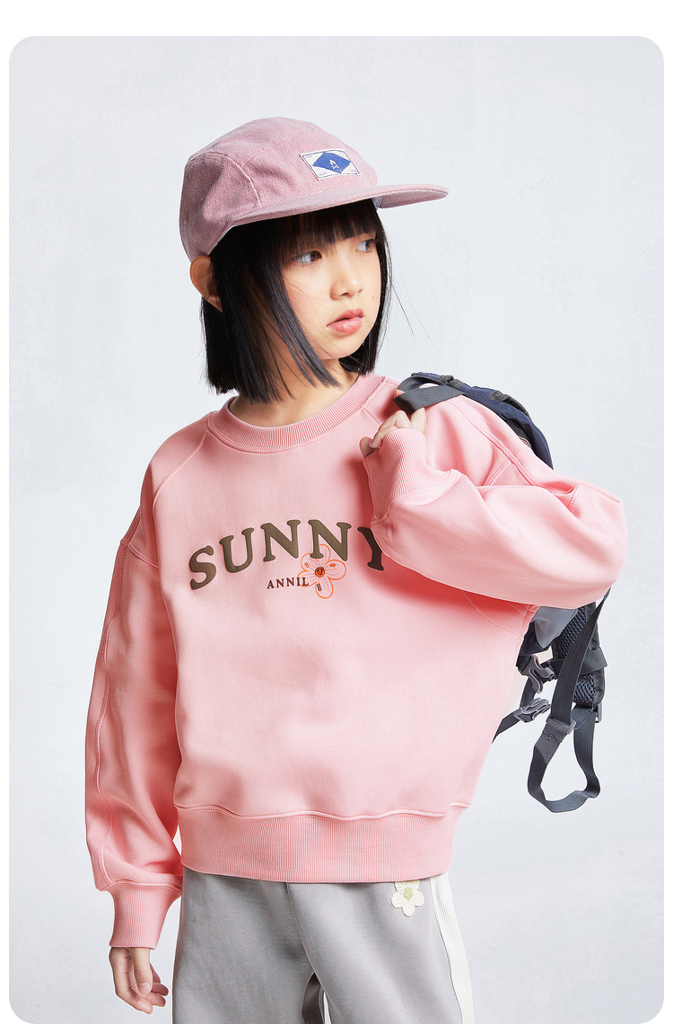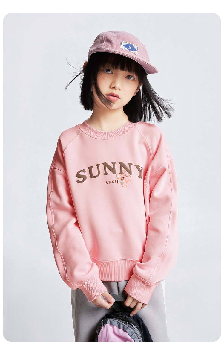 女童圆领长袖卫衣春季新款安奈儿童装EG511010
