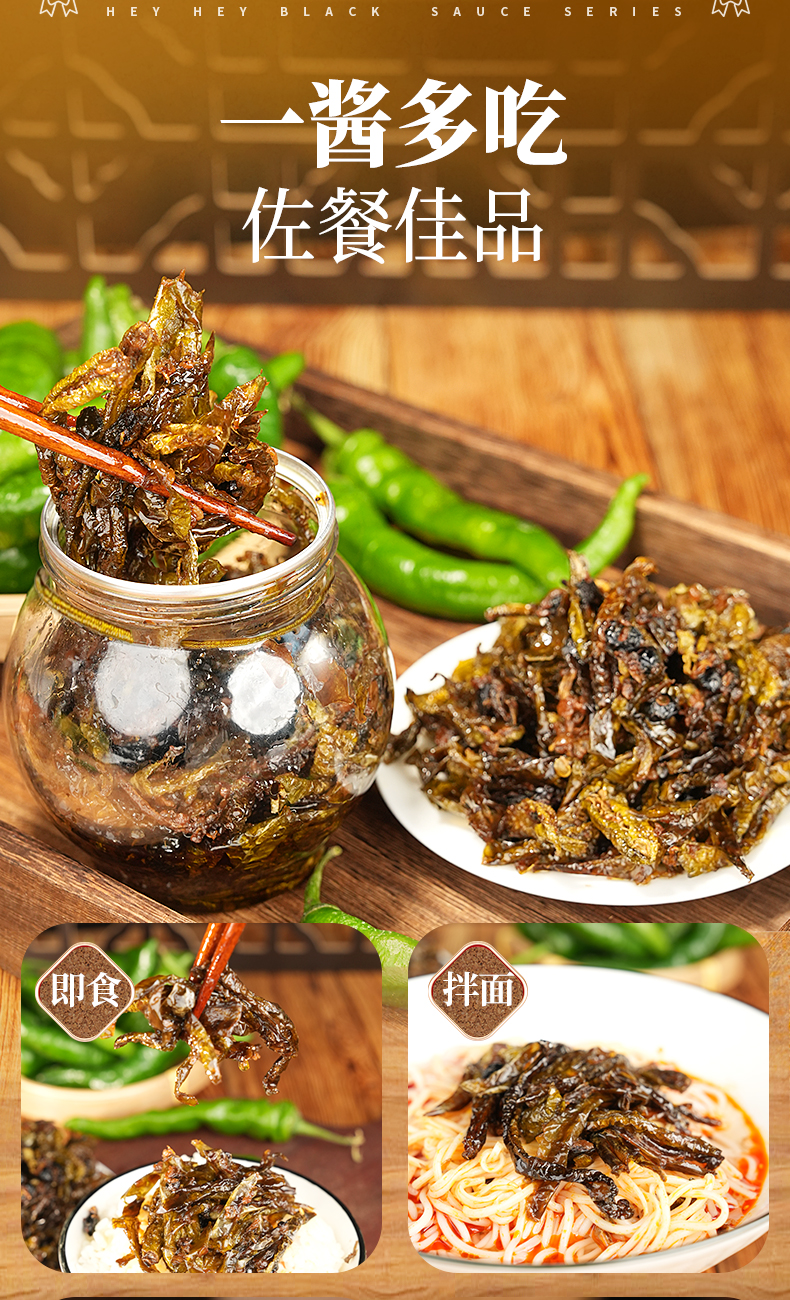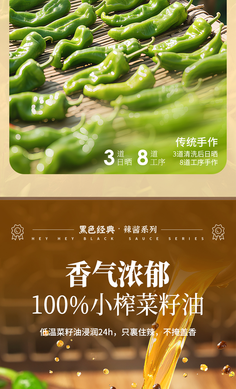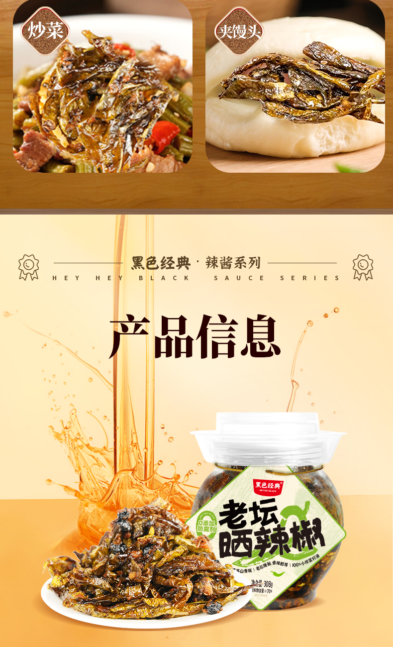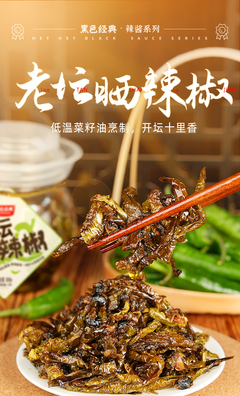 【57.6元任选3件】黑色经典老坛晒辣椒308g/罐 3道日晒8道工序