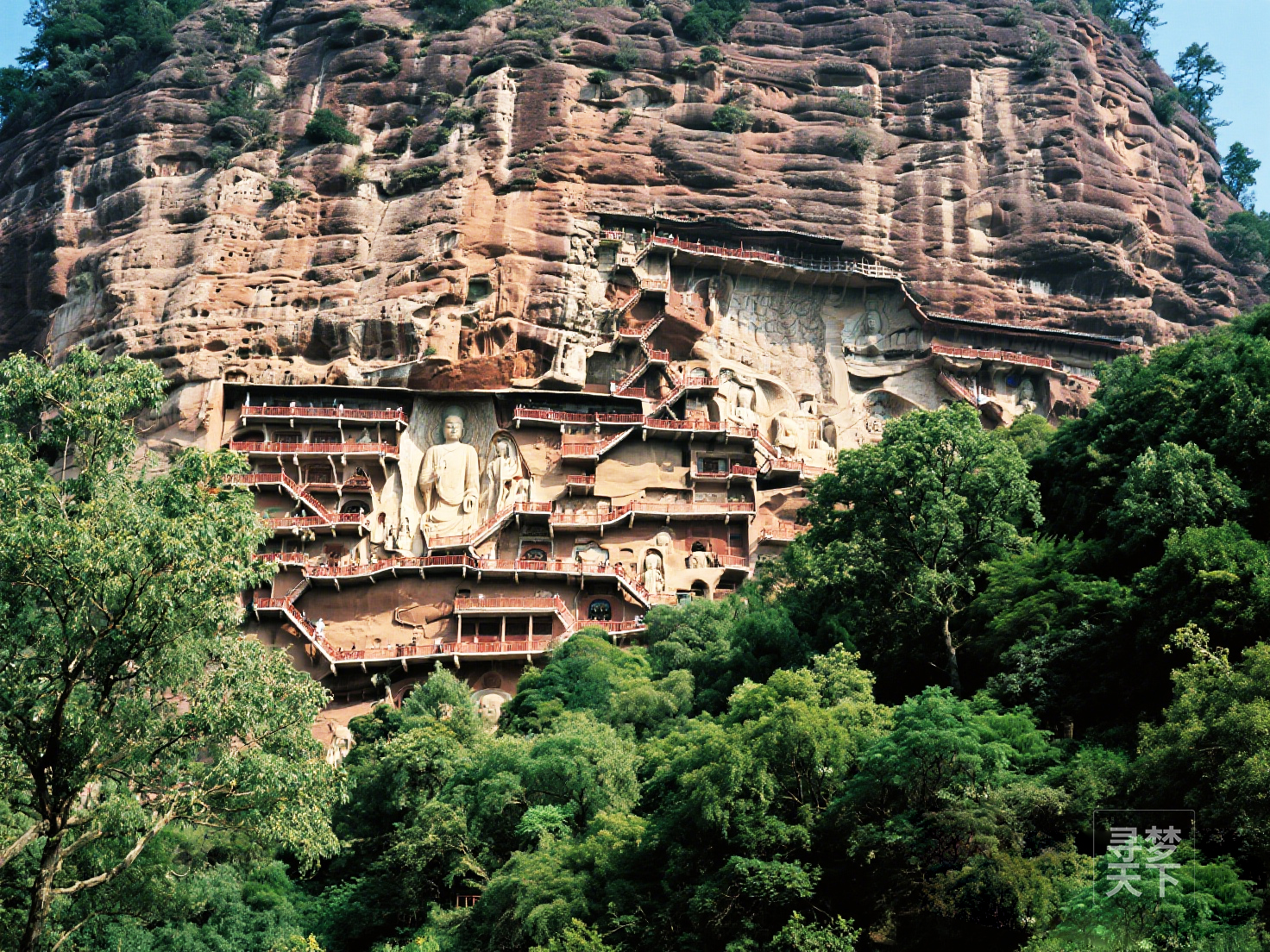 麦积山石窟:“东方雕塑馆” 的凌空栈道、精美人面泥塑,以及孤峰如麦垛的山体与林海的对比景观。