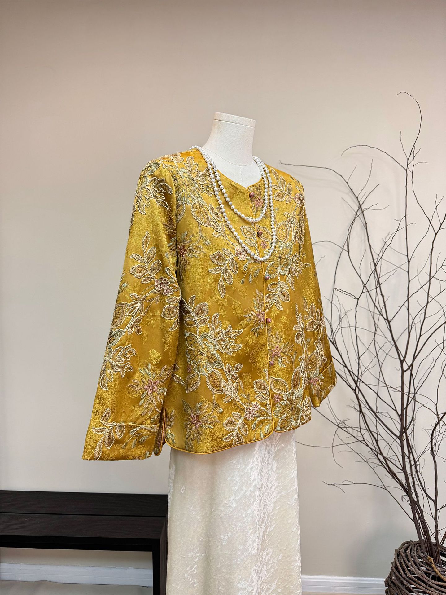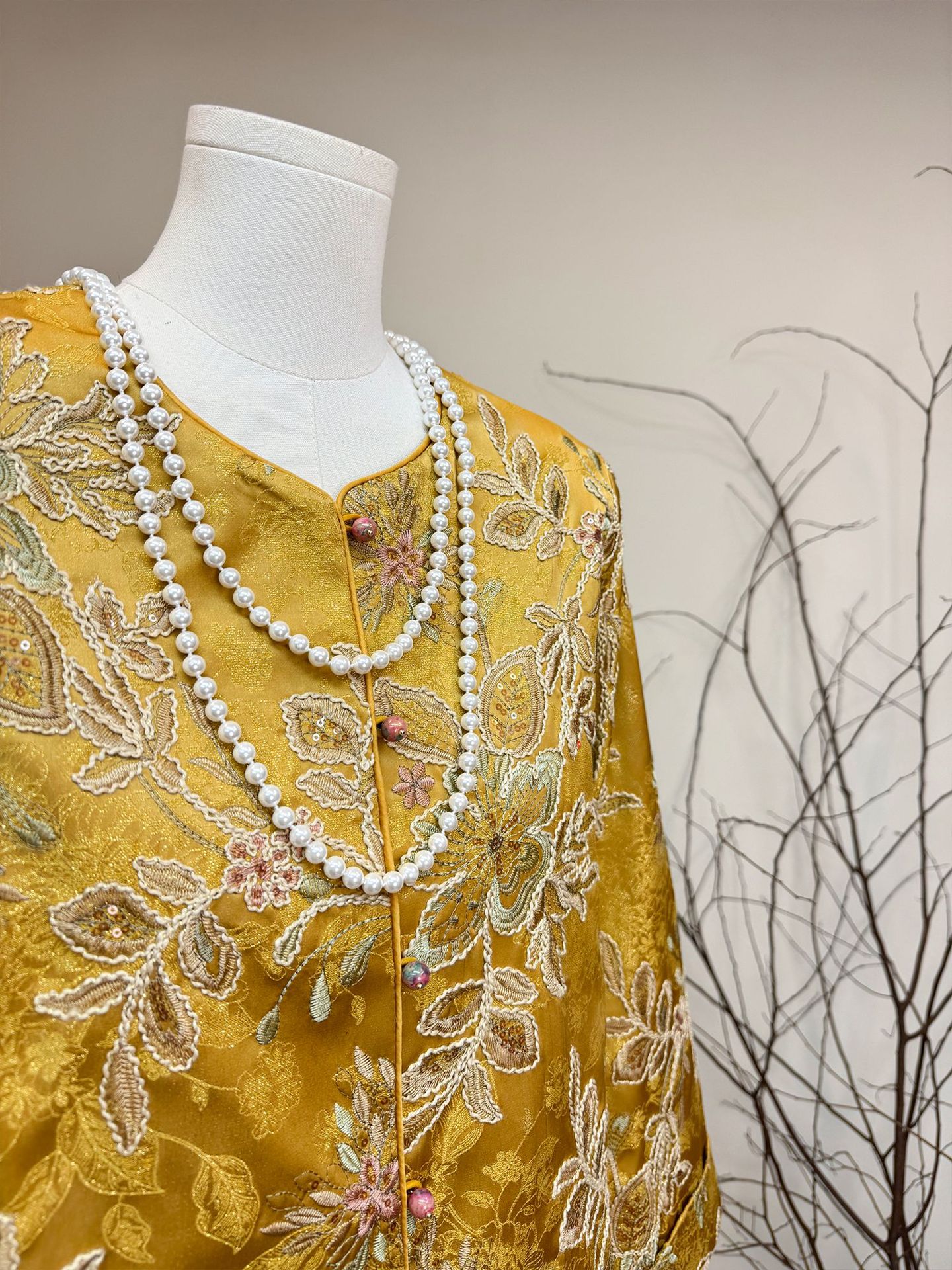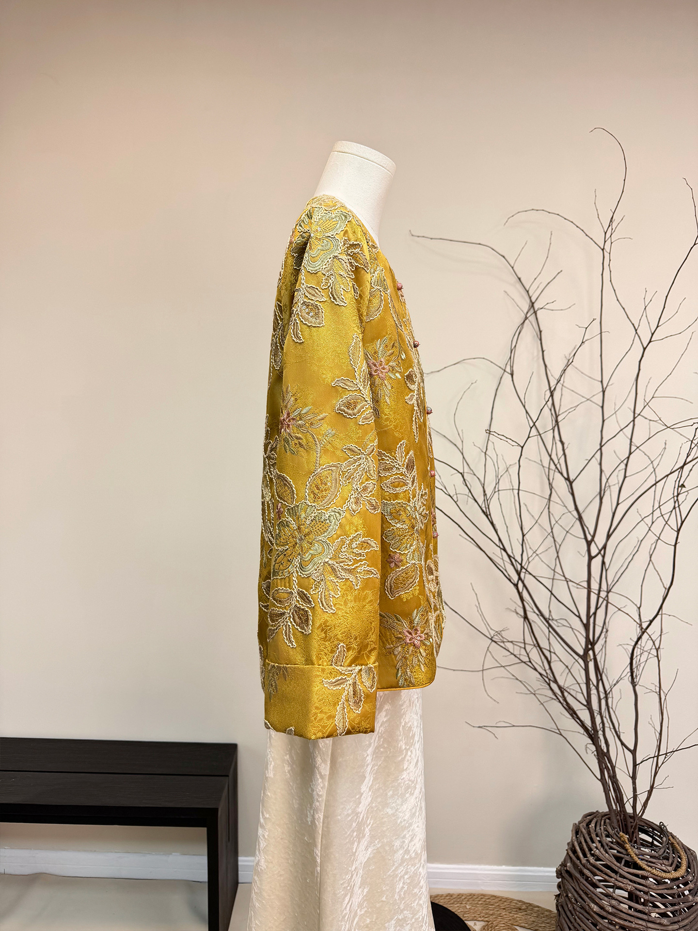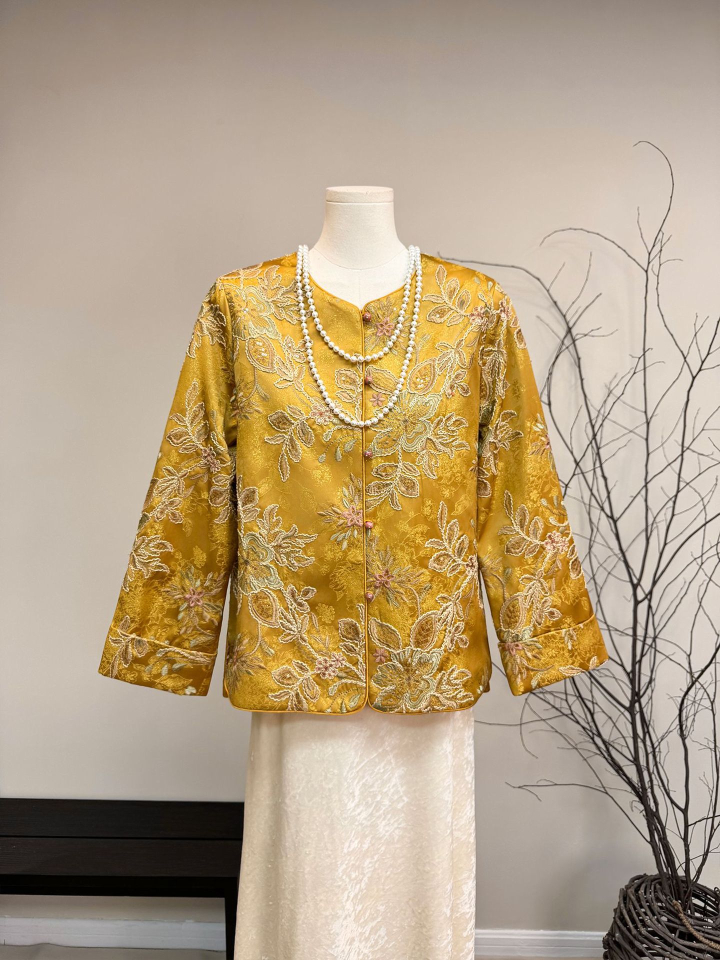 丁摩 新中式刺绣提花亮片外套春季新款圆领国风金色上衣女6ZF-3162
