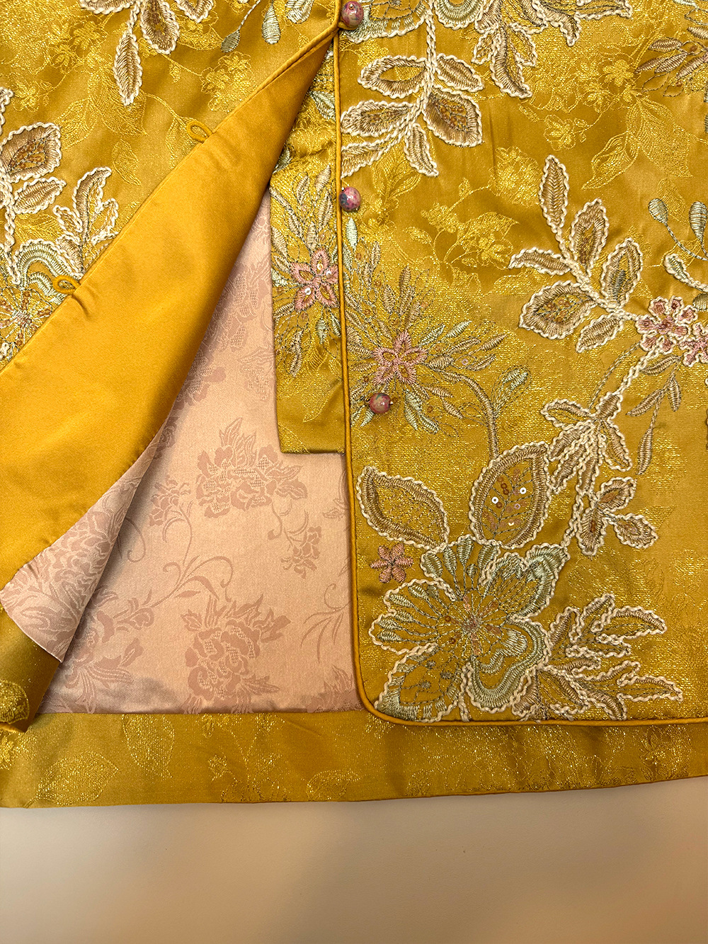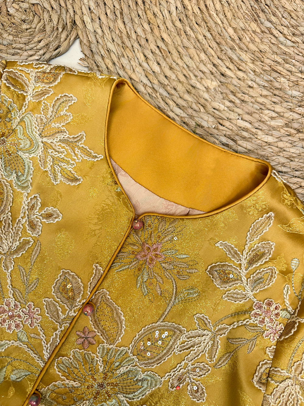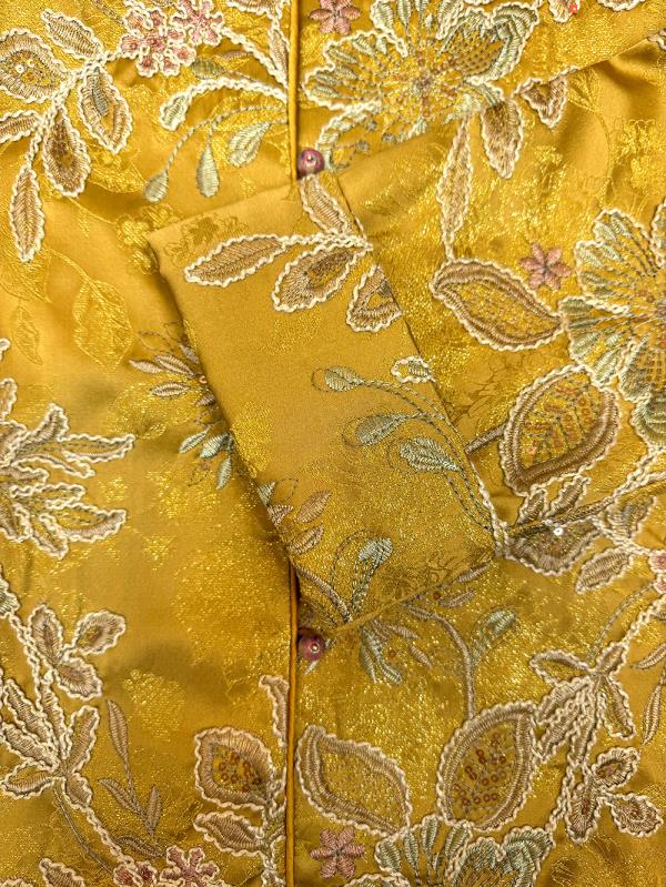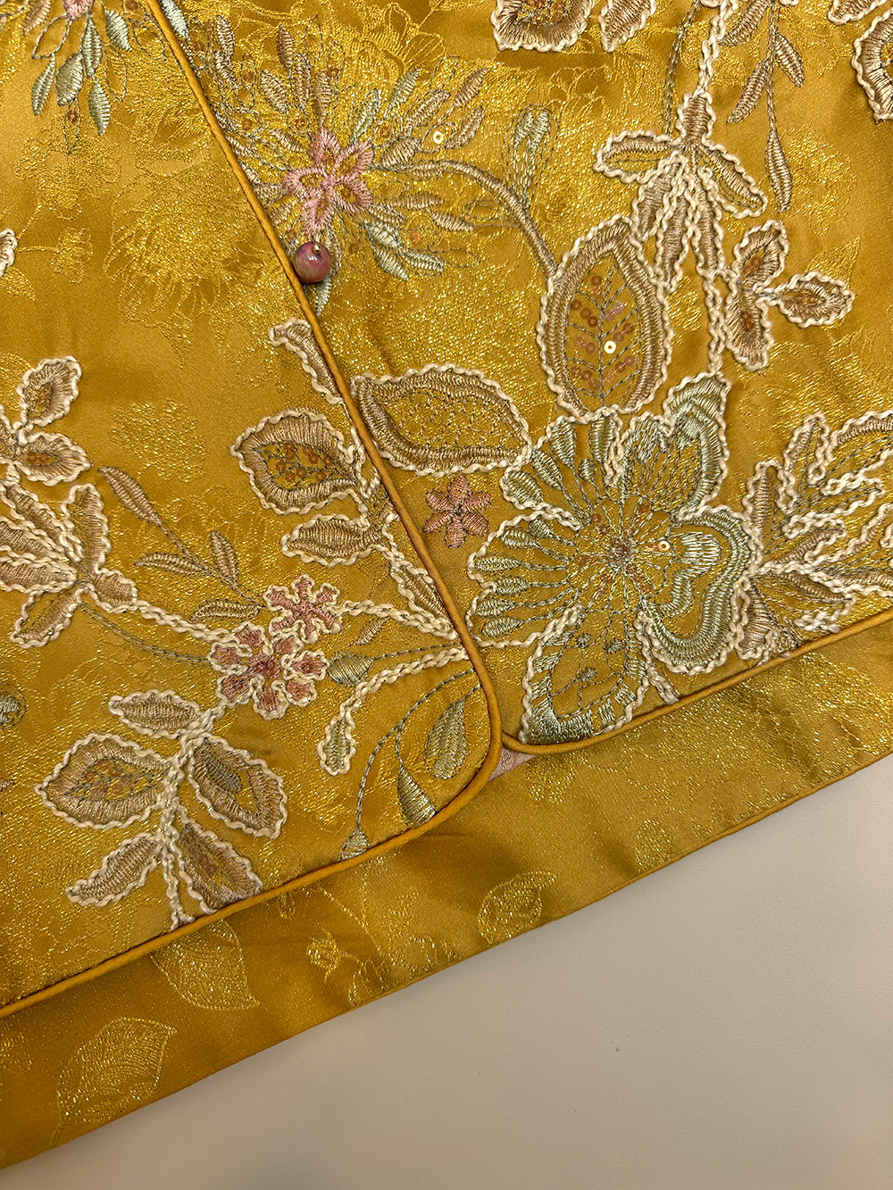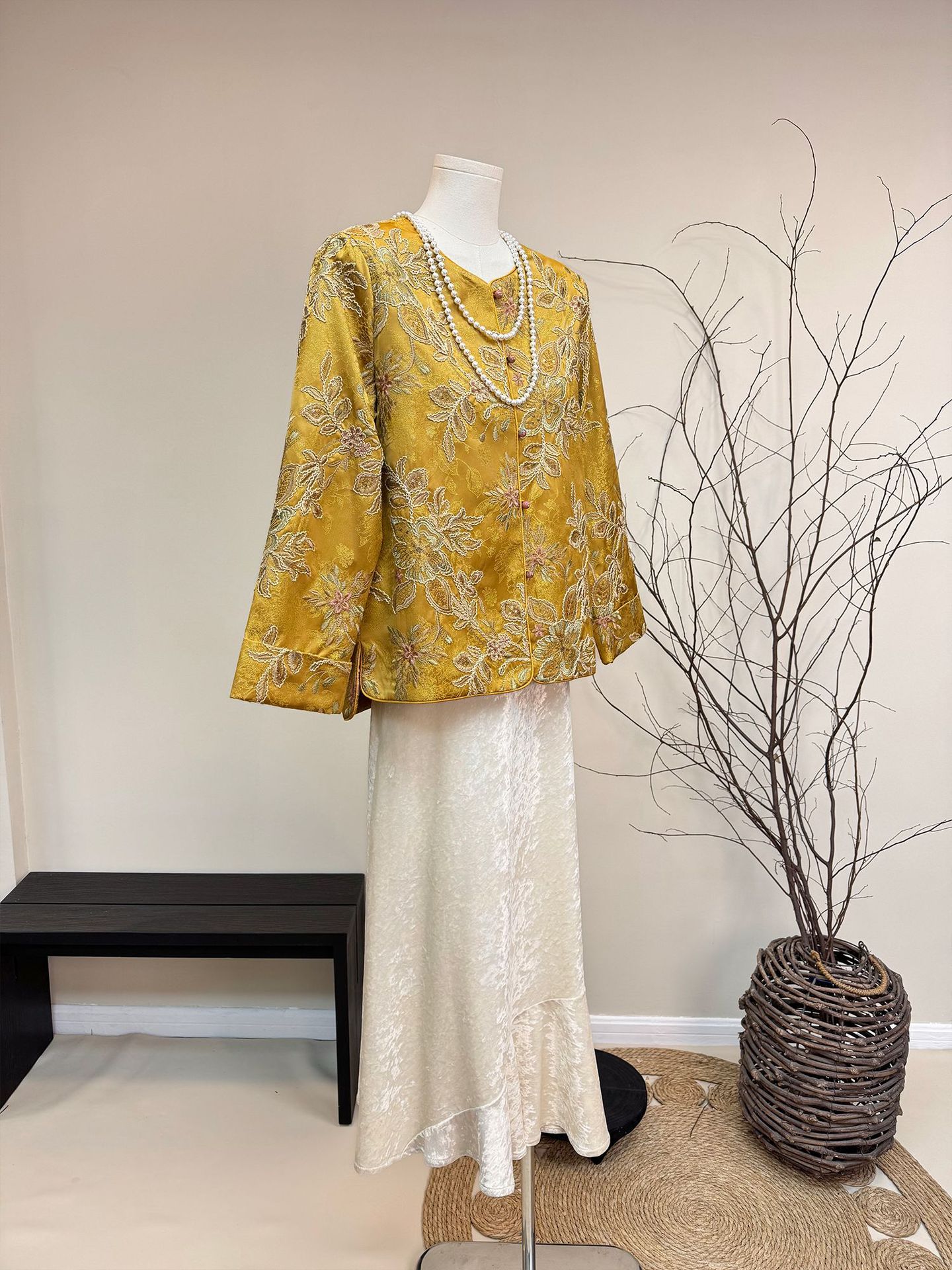 丁摩 新中式刺绣提花亮片外套春季新款圆领国风金色上衣女6ZF-3162