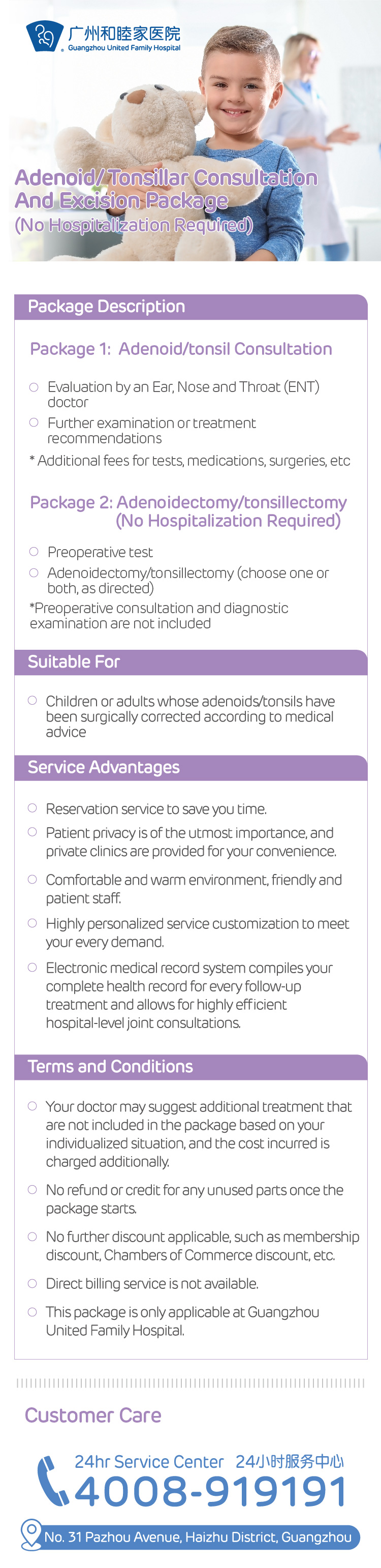 Adenoid/tonsillar Consultation and Excision package (No Hospitalization Required)