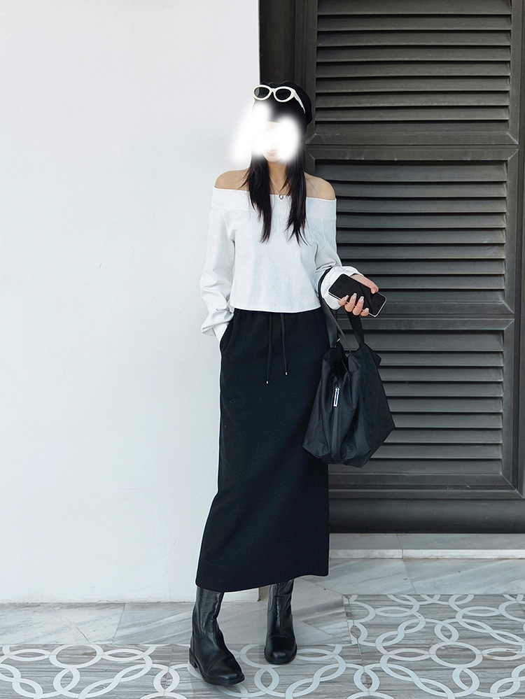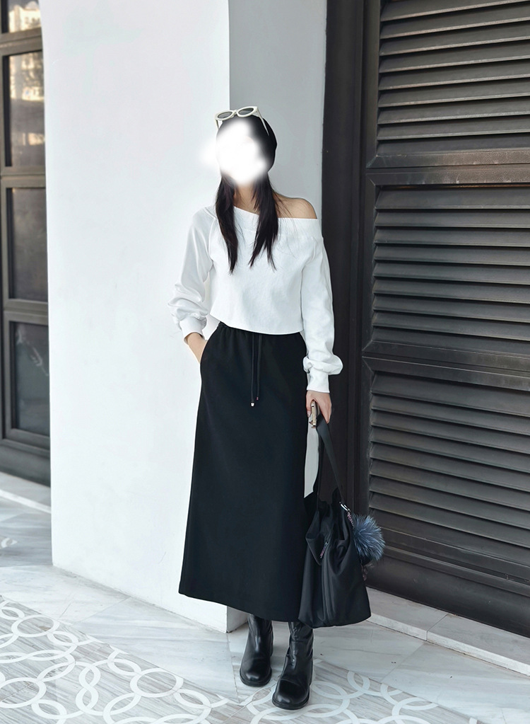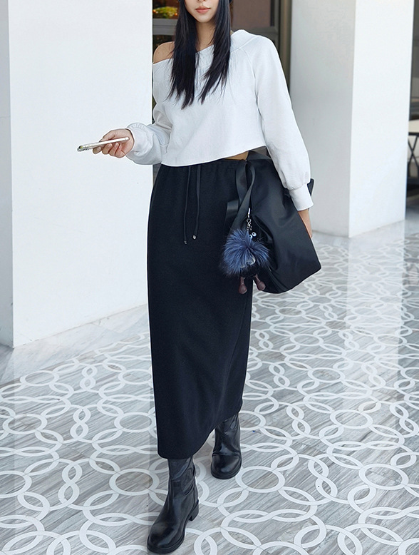 WS 91791『简约优雅』运动休闲直筒半身裙加厚绒感松紧腰舒服宽松版