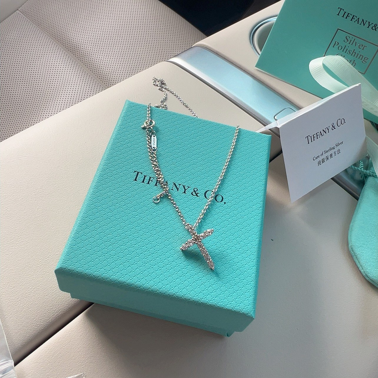 Tiffany 蒂芙尼十字架镶钻项链,溪梦瑶同款项链!经典简约百搭的十字架造型!925银镶嵌市场最高版本的进口高碳钻,超闪耀✨简单大方不浮夸,叠戴非常nice!!